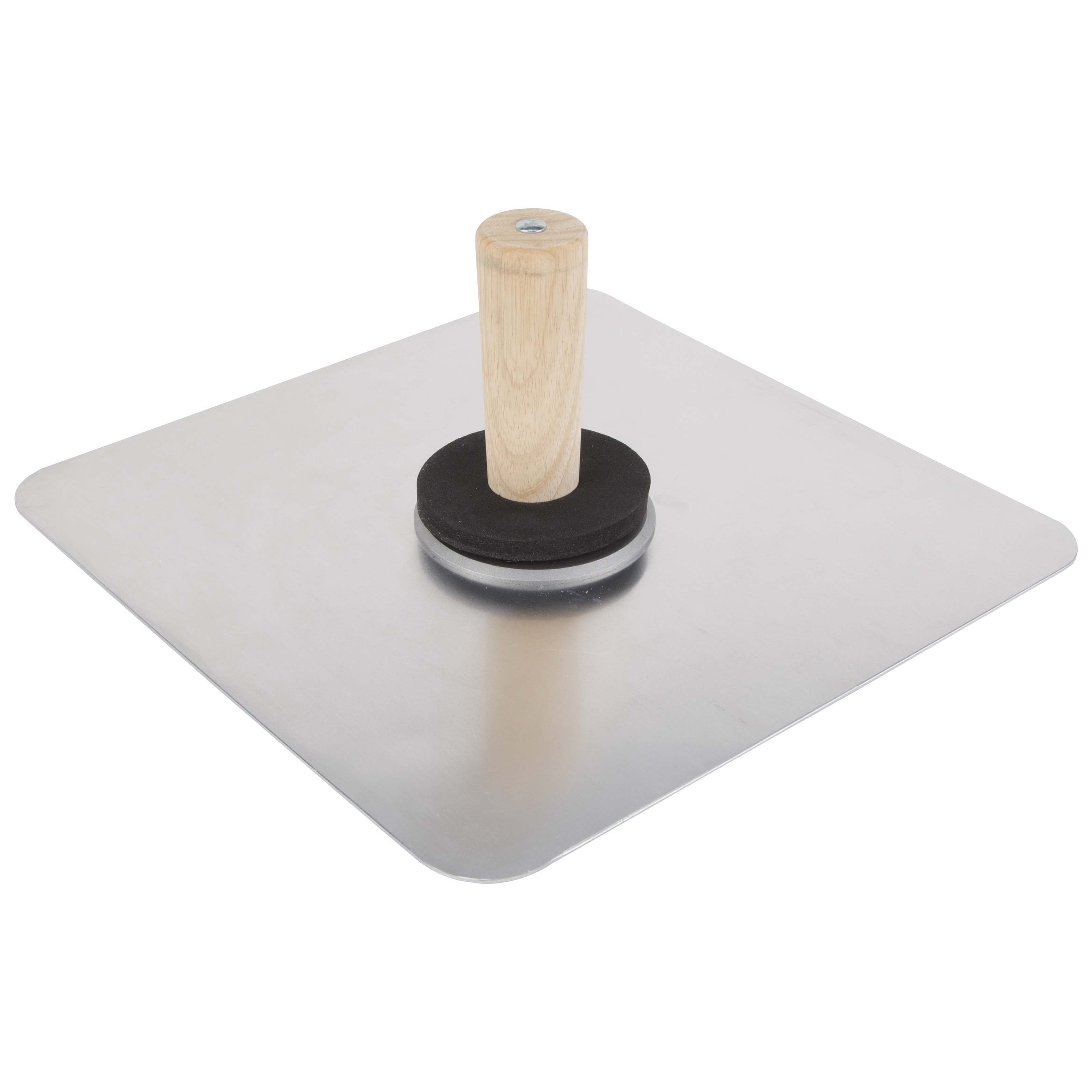 The Vulcan 169503L Hawk is made of heavy gauge hard-rolled aluminum with smooth edges and round corners for convenience. The 13 in L x 13 in W wood handle and sponge callus preventer is included.