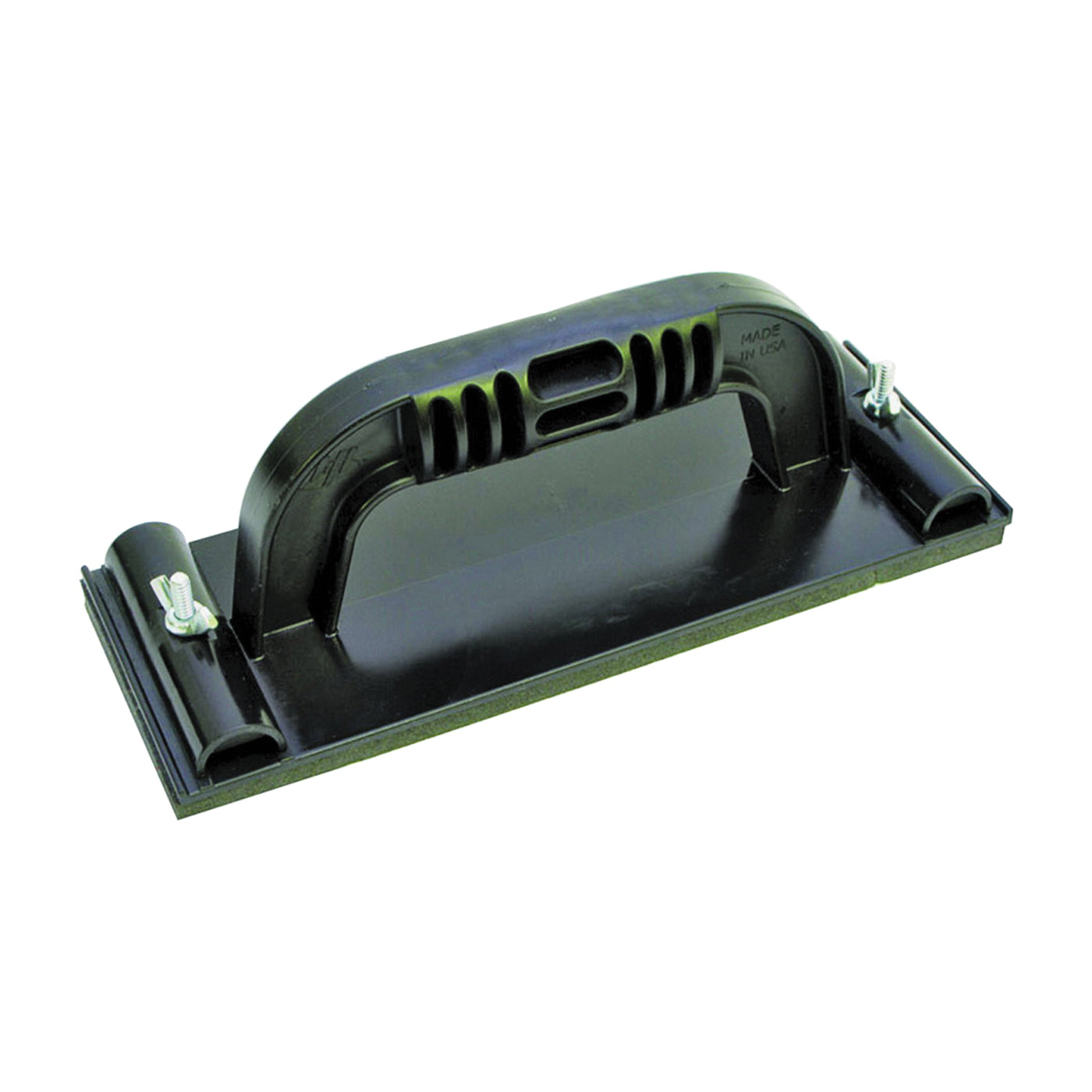 Made of molded plastic. A comfortable lightweight tool. For use with die-cut or a half sheet of standard sandpaper.