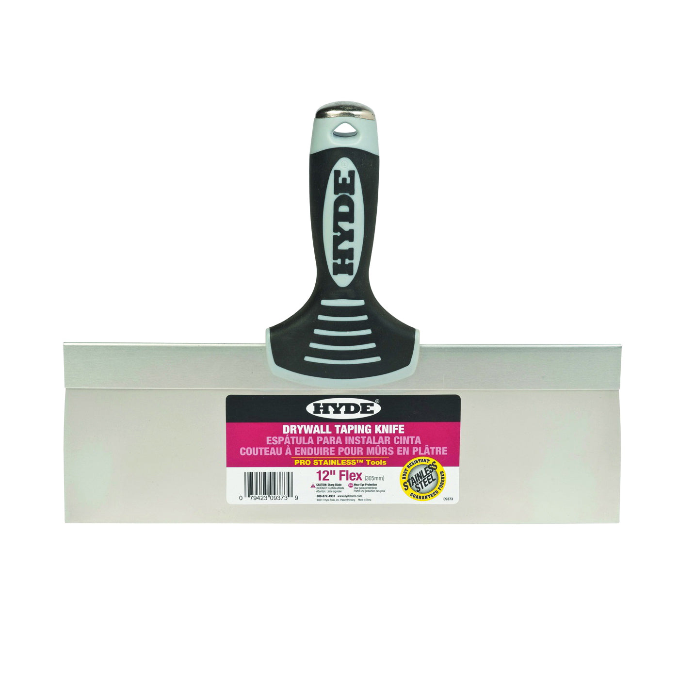 12 in stainless joint knife for drywall joint taping, finishing and patching with a soft-grip handle and our patented Hammer Head® end. Stainless steel blades designed to pro specifications. Rivet-free construction will not loosen with use.