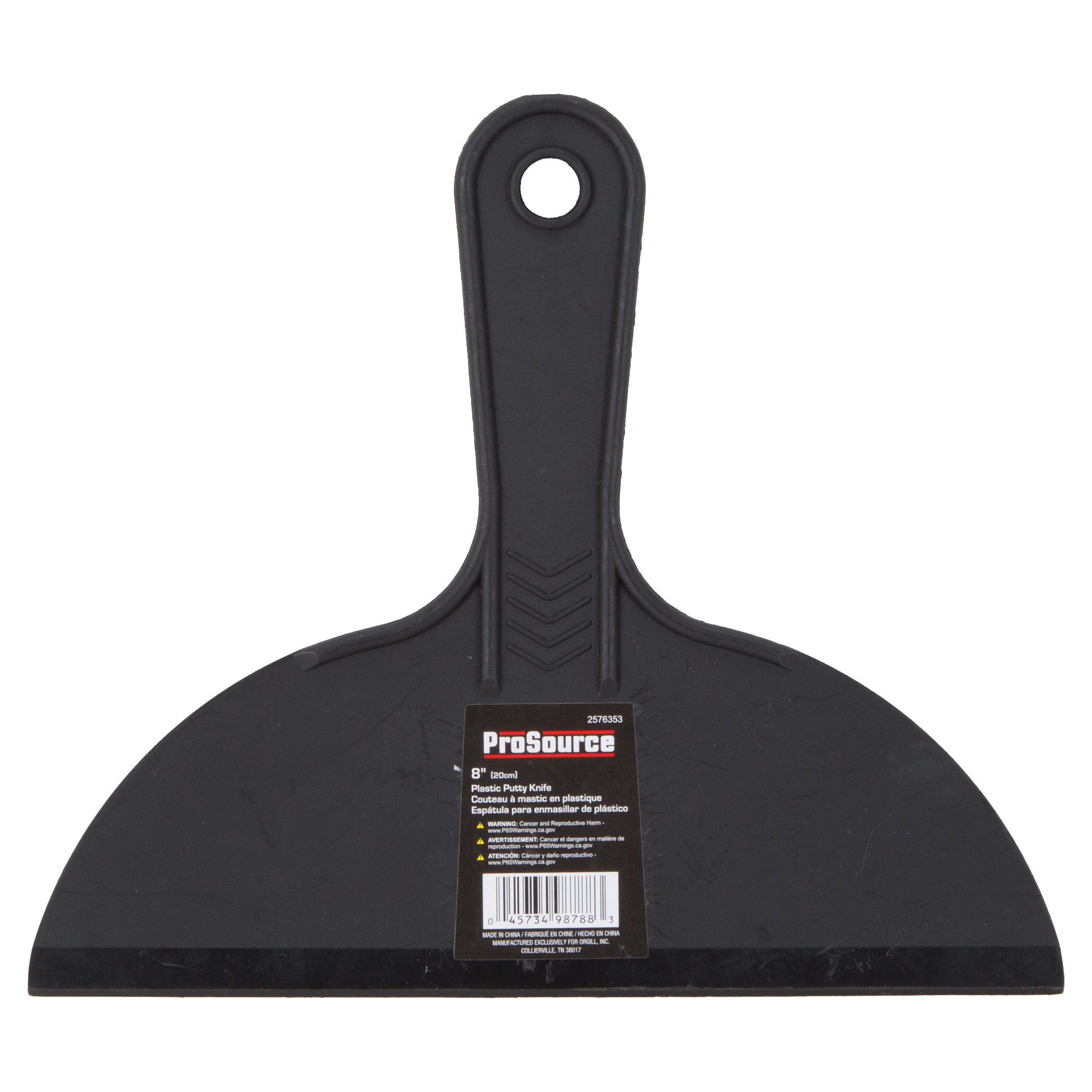 The ProSource Putty Knife has a plastic blade with a plastic handle. It has a hang hole to make stocking easier for retailers. This can be used for light-duty construction or home projects with easy spreading and easy cleanup.