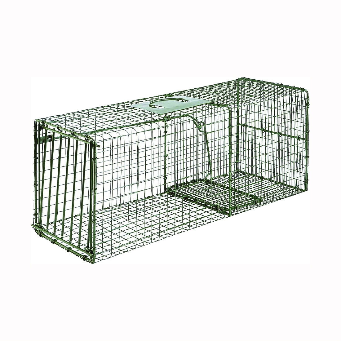 Duke standard and heavy-duty cage traps offer the ultimate variety in humane live catch cage traps today. The standard cage traps feature steel rod reinforced spring loaded doors, pressure sensitive trip mechanisms and a durable, concealable green powder-coated finish. For the animal control professional and trapper, Duke also offers top of the line heavy-duty cage traps featuring all steel rod gravity drop doors, bait protected cage mesh and a complete internal steel rod frame. All cage trap models are constructed to provide for exceptional durability with no harm to the animal.