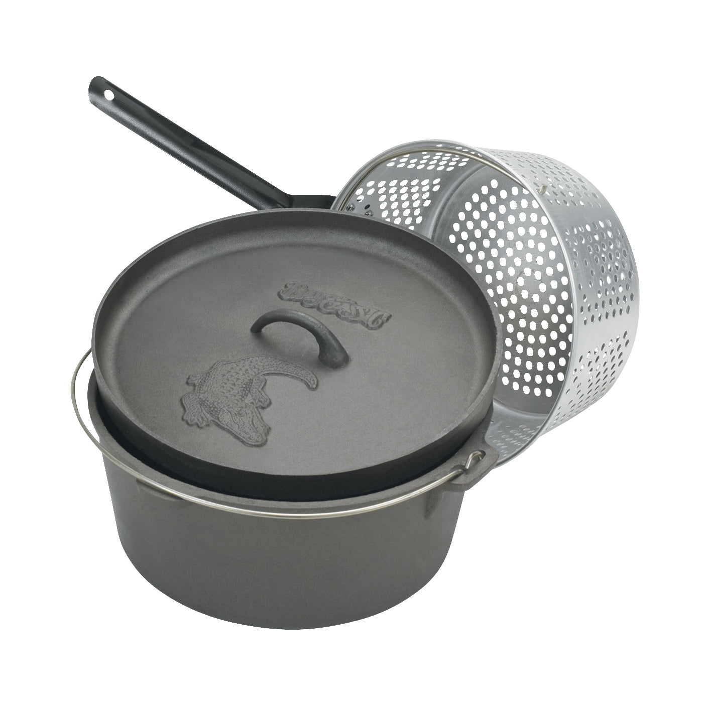 • Bayou Classic 7460 Dutch Oven with Basket, 8.5 qt Capacity, Cast Iron, 12-3/4 in Dia
