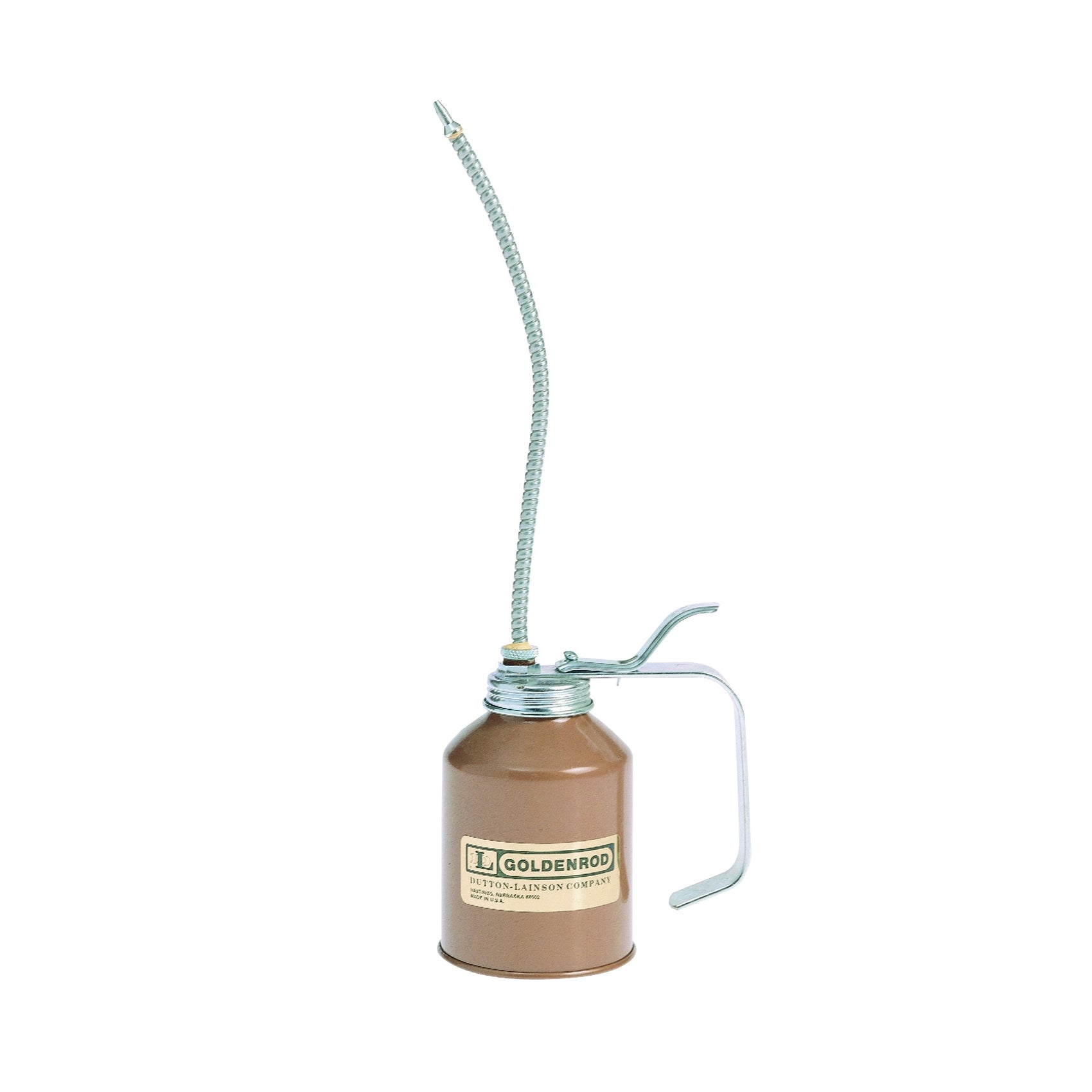 Industrial pump oilers are very durable and is constructed for hard service. Drawn steel containers have double seamed bases and the spouts are removable from top cap. These units feature zinc die-cast high pressure pump with precision ground piston exclusive with golden rod oilers.