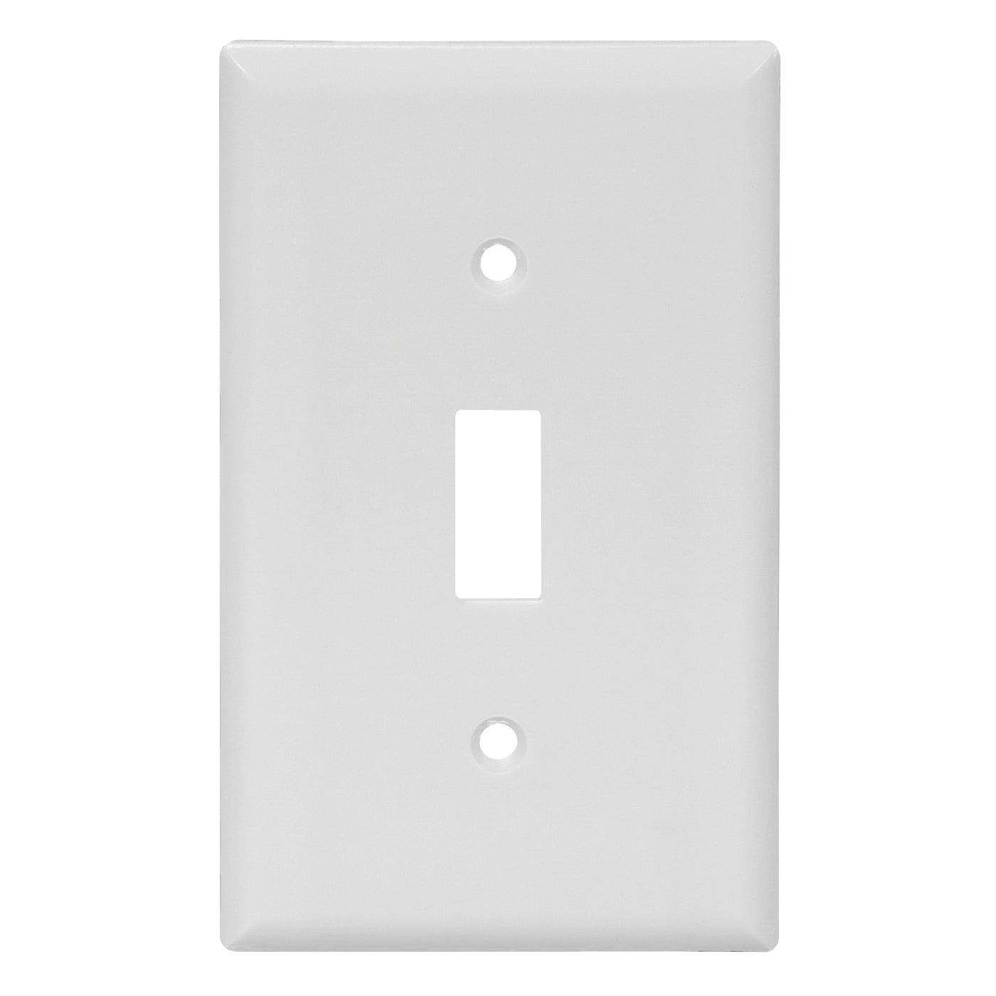 Molded from non-flammable nylon. Flush-fitting, warp-resistant design. Screw-catch feature holds mounting screws captive and simplifies installation. Matching screws provided. High gloss finish is soil resistant. Plate size: 4.50 x 2.75 in.