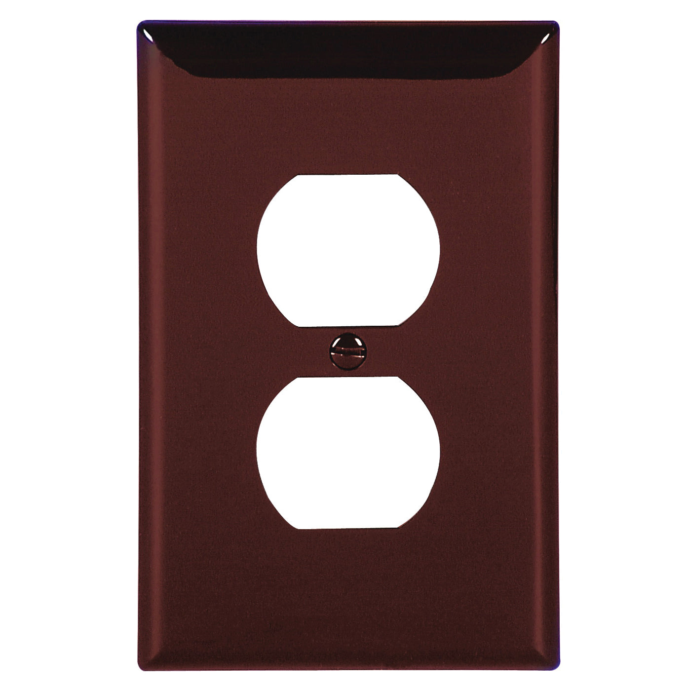 Molded from non-flammable nylon. Flush fitting, warp-resistant design. Screw-catch feature holds mounting screws captive and simplifies installation. Matching screws provided. High-gloss finish is soil resistant. Standard-size - 2-3/4 in x 4-1/2 in.