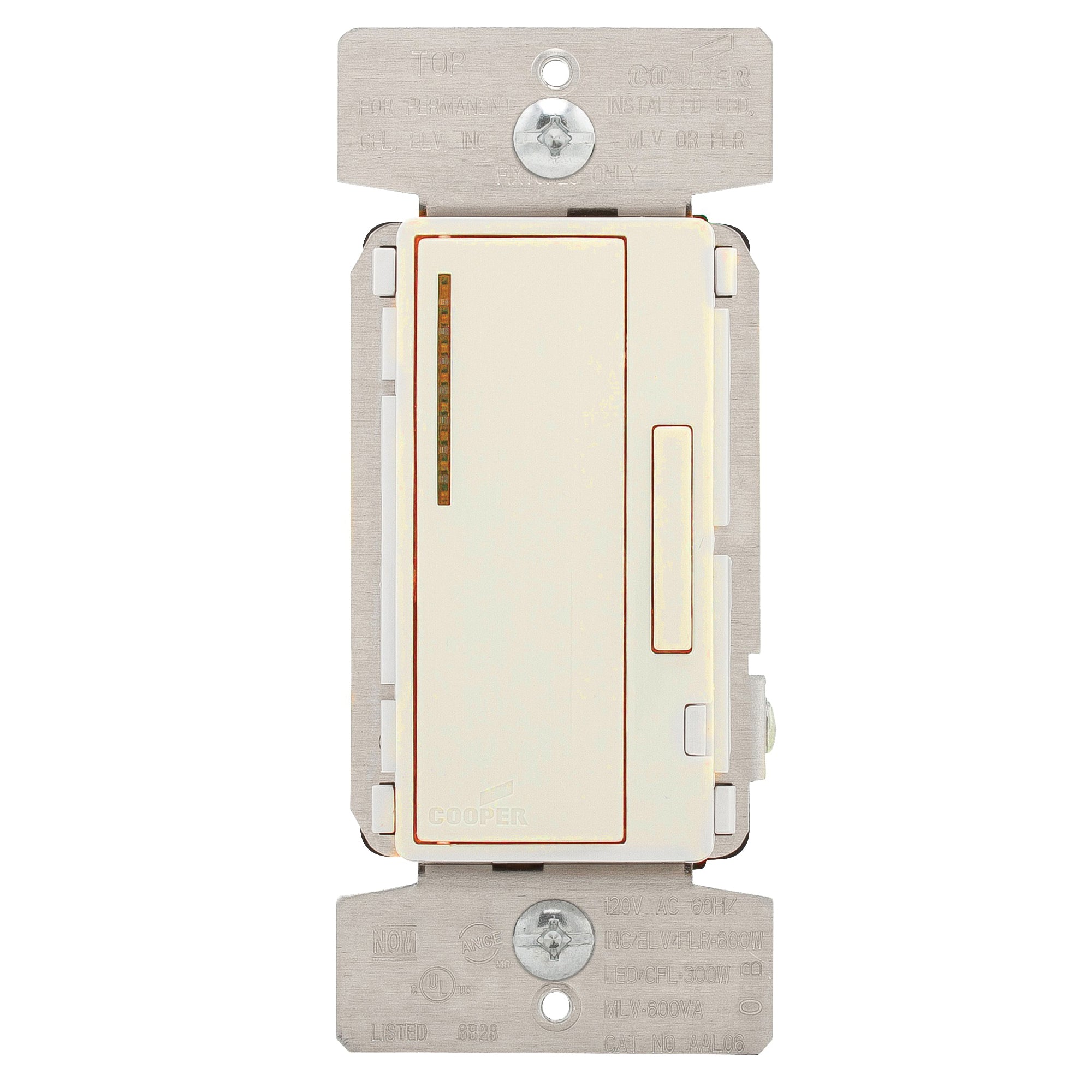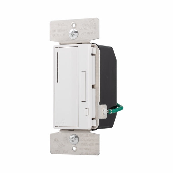 Replaces a standard switch. Provides smooth, full range digital dimming for incandescent, halogen, electronic low-voltage, magnetic low-voltage, dimmable LED/CFL and Fluorescent lighting. 300 W dimmable LED/CF, 600 W Incan/dimmable ELV/halogen/dimmable FLR 600 VA MLV, 120 VAC, 60 Hz requires neutral connection in wallbox. Ability to set min/max dimmer level for maximum compatibility with different loads. Rapid start feature which allows the light to come on instantly in the case of LED/CFL loads and the ability to disable that feature. One master dimmer works with up to five (5) accessory dimmers, Orgill Sku #339-6181. Tri-color packaging which provides one unit box with three color faceplates. cULus listed and NOM certified.