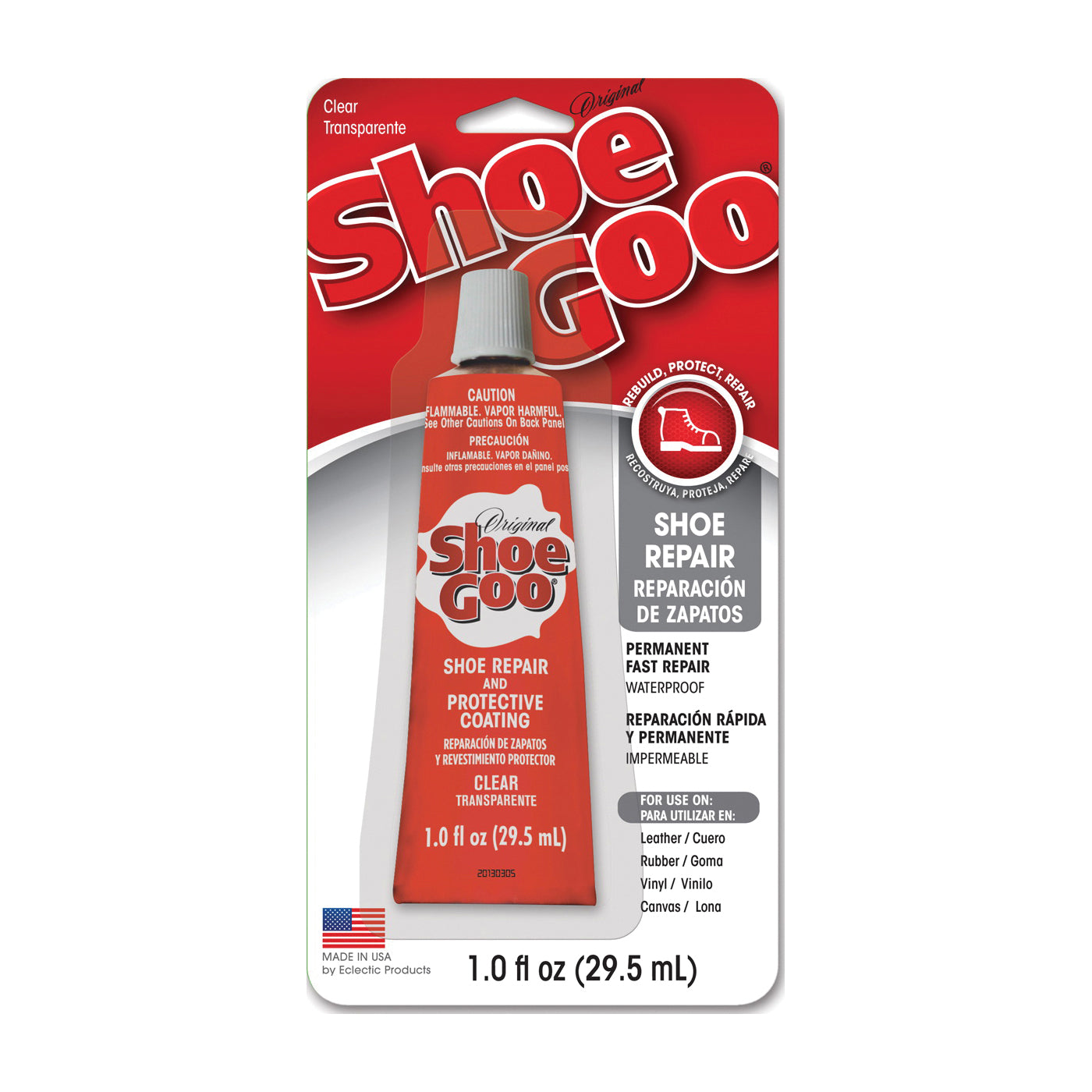 Shoe GOO is the No 1 shoe repair adhesive. It's ideal for fixing worn soles or damaged heels, coating shoes to prevent premature wear and sealing galoshes, waders or rubber boots. The unique formula is designed for strong abrasion resistance and better adhesion to flexible materials. Shoe GOO has been scientifically formulated to repair, seal and stick to a wide variety of materials with excellent strength to any other brand.