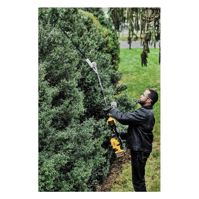 Get the versatility and trimming power you need to get the job done with the DeWALT universal articulating hedge trimmer attachment. This adaptable add-on will conveniently change your attachment capable power head into a hedge trimmer. Tackle a variety of tasks with a durable 22 in dual-action, hardened steel blade that has a flexible 135 deg cut range. Additional attachments are available to convert to other outdoor tools.