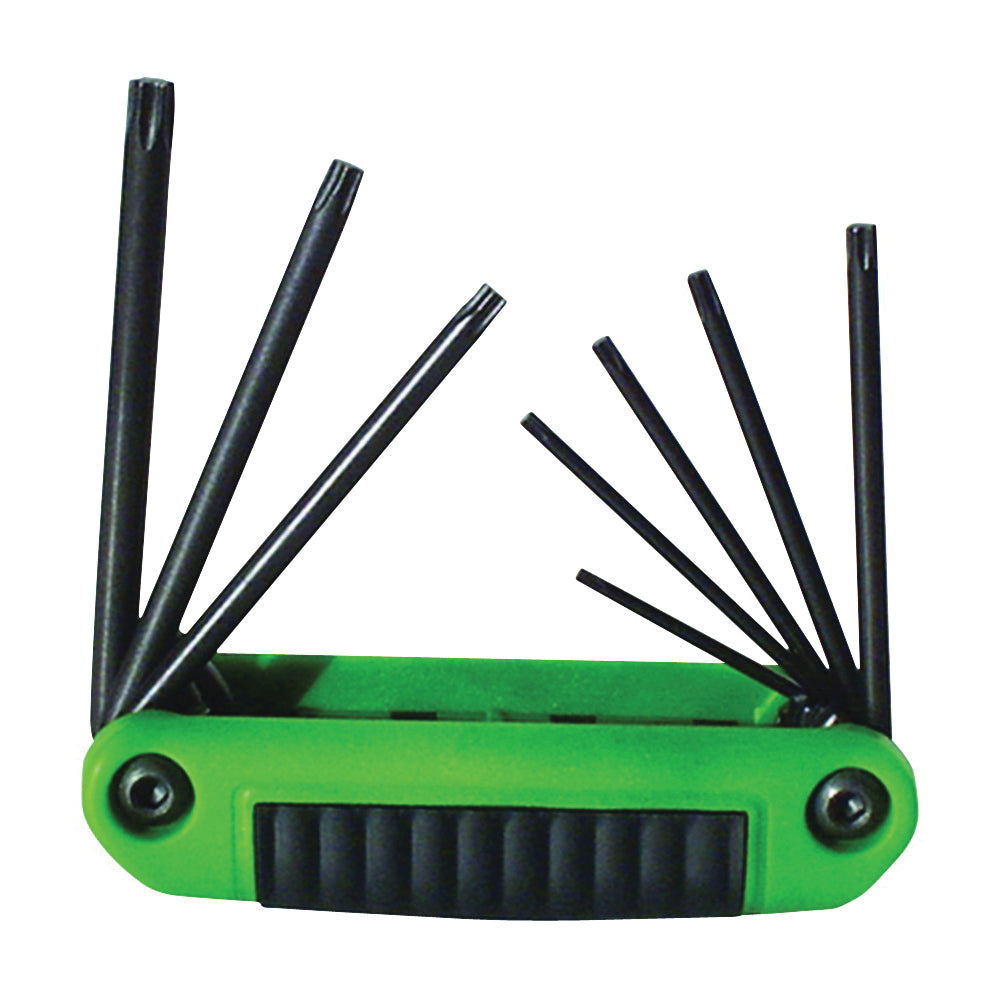 Made with Eklind alloy steel that has been heat-treated for optimum strength and ductility with a black finish to resist rust and a ergonomic handle. Includes keys of size T8, T10, T15, T20, T25, T27, T30 and T40. Carded packing.