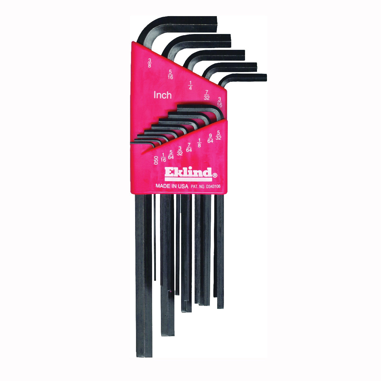 Made with Eklind alloy steel that has been heat-treated for optimum strength and ductility with a black finish to resist rust. Includes inch sizes: 0.050, 1/16, 5/64, 3/32, 7/64, 1/8, 9/64, 5/32, 3/16, 7/32, 1/4, 5/16, 3/8 and holder.