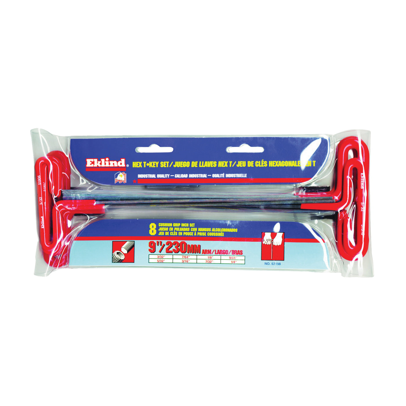 Made with Eklind alloy steel that has been heat-treated for optimum strength and ductility with a black finish to resist rust. Includes inch sizes: 3/32, 7/64, 1/8, 9/64, 5/32, 3/16, 7/32, 1/4 and storage pouch.