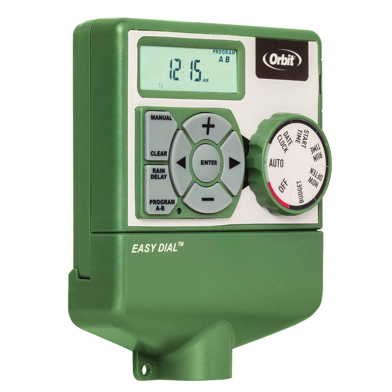 The easy dial indoor timer makes programming a snap. Utilizing Orbit's easy-set logic programming, your timer can be watering in a few minutes. This new timer also includes an auto-reset circuit breaker and large easy-to-read LCD and dial.