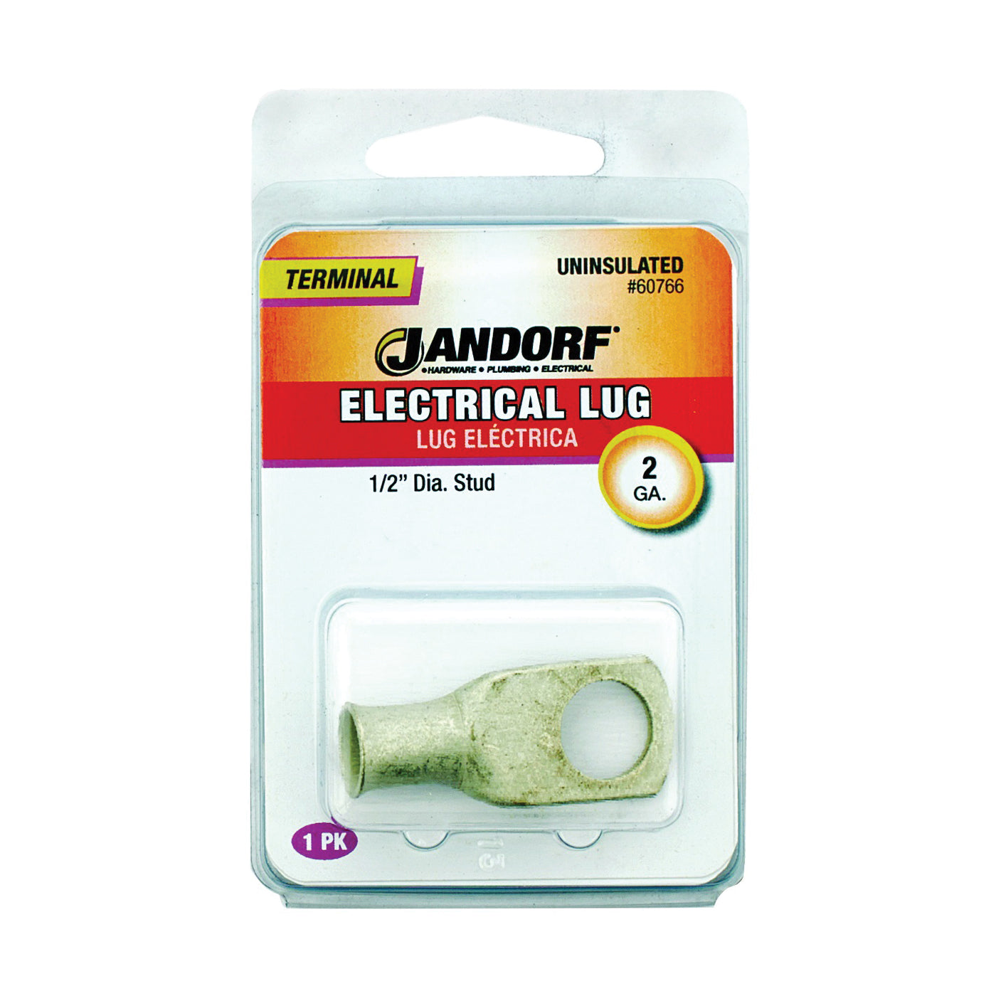 Jandorf Electrical Lug, 2 AWG Wire, Copper Contact, Tin Contact Coating, 1/2 in Stud
