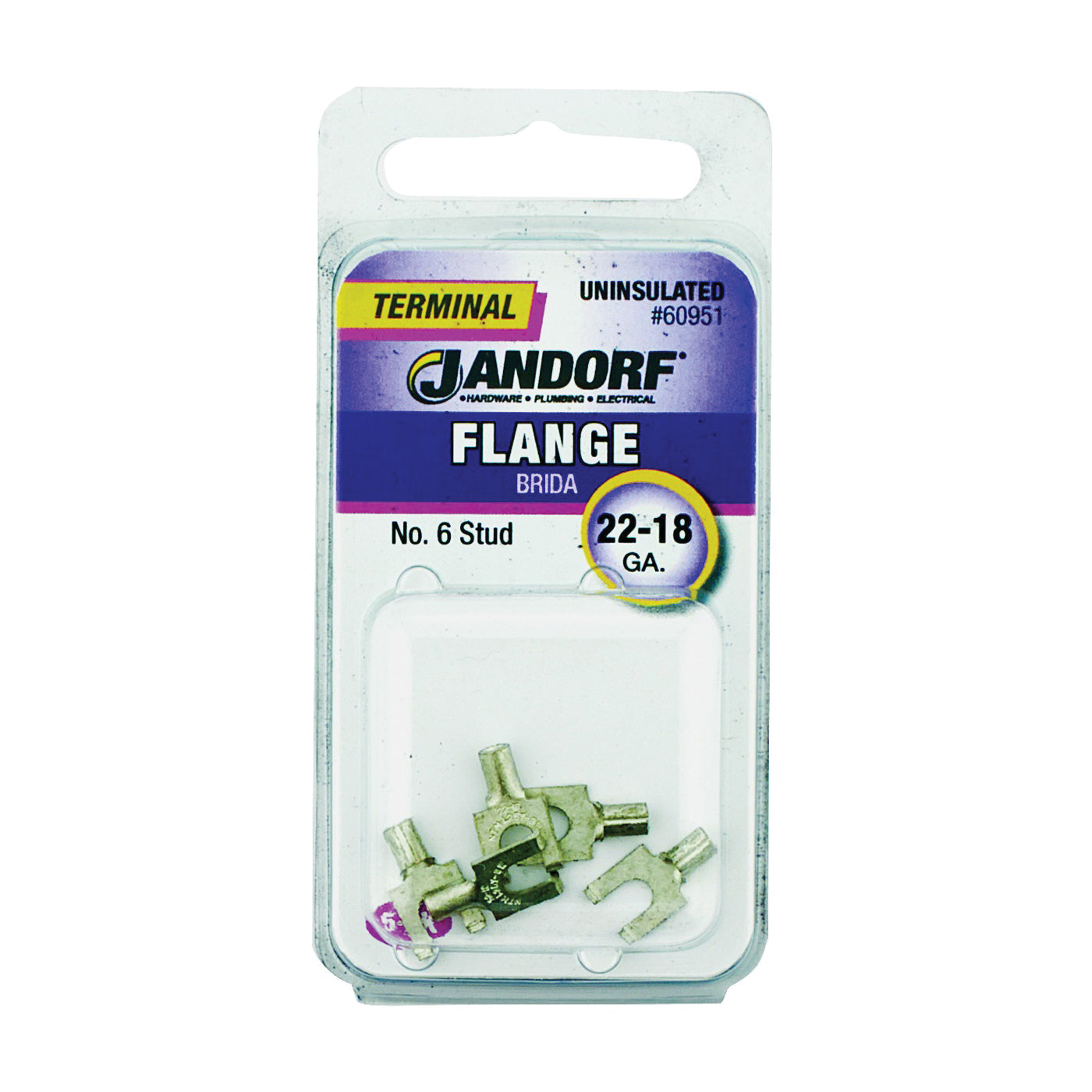 Jandorf Spade Terminal, 22 to 18 AWG Wire, Copper Contact, Tin Contact Coating, #6 Stud