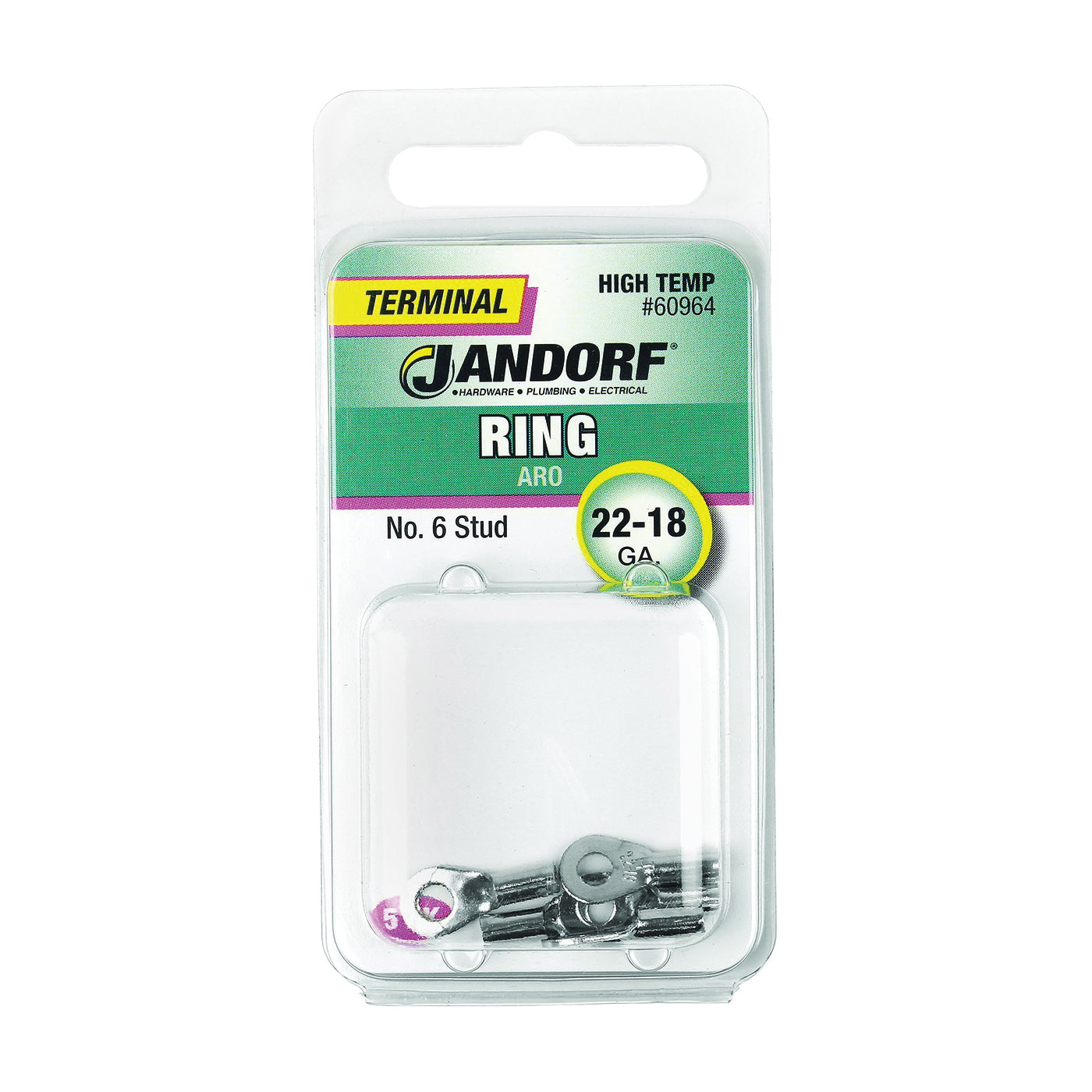 • Jandorf 60964 Ring Terminal, 22 to 18 AWG Wire, #6 Stud, Copper Contact, Tin, 5/PK