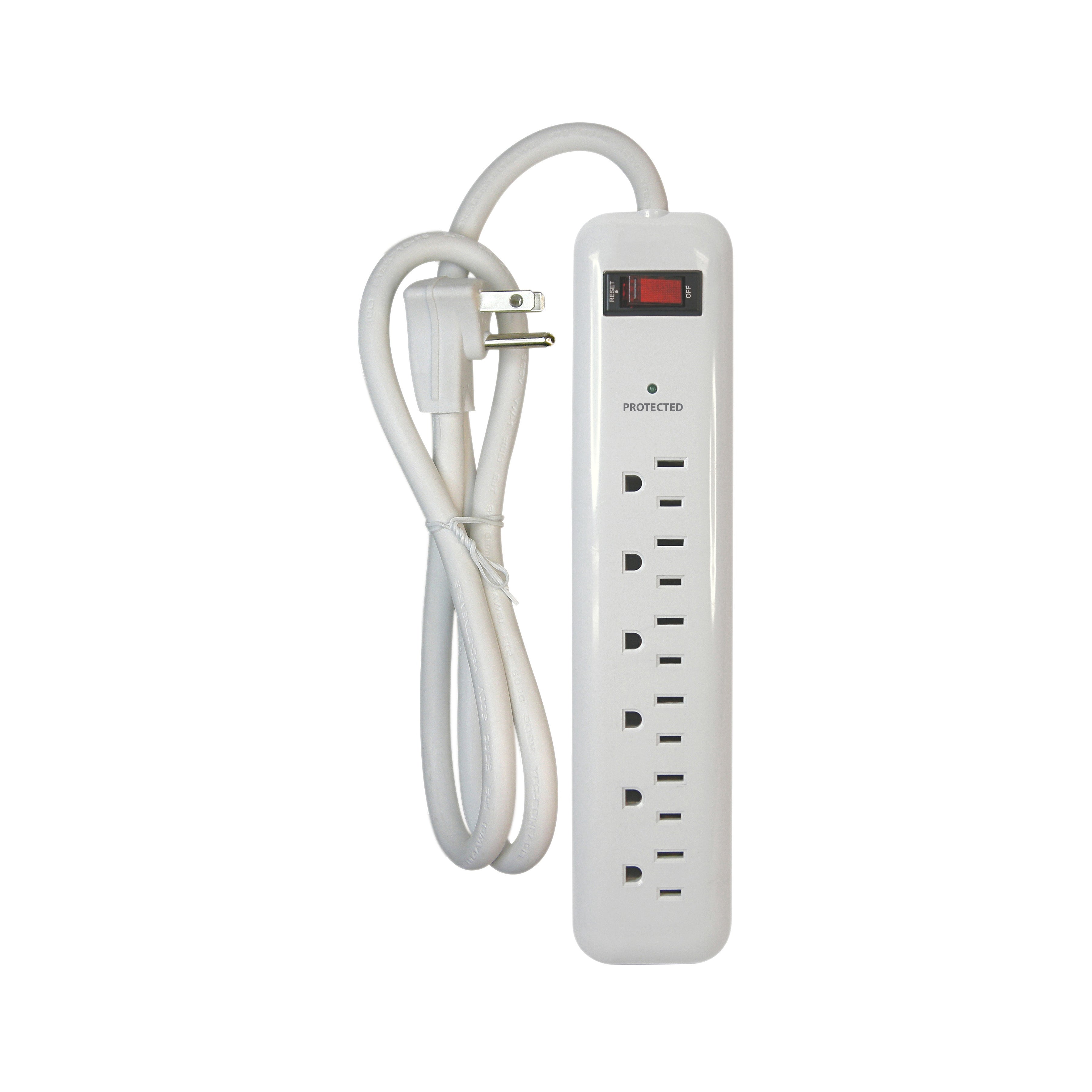• PowerZone OR802126 Surge Protector Power Strip, 125 V, 15 A, 6-Outlet, 1000 Joules Energy, White