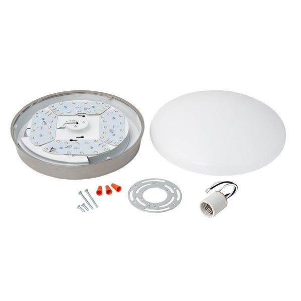Spin light, used in residential, office, retail, restaurant, school, hospital and hotel/motel locations in bathrooms, closets, utility rooms, interior hallways or interior stairwells. Can be wall- or ceiling-mounted. Mounts to all lamp holders. Round, 4000 K, white. UV, IR and mercury free. UL/cUL listed for damp locations.