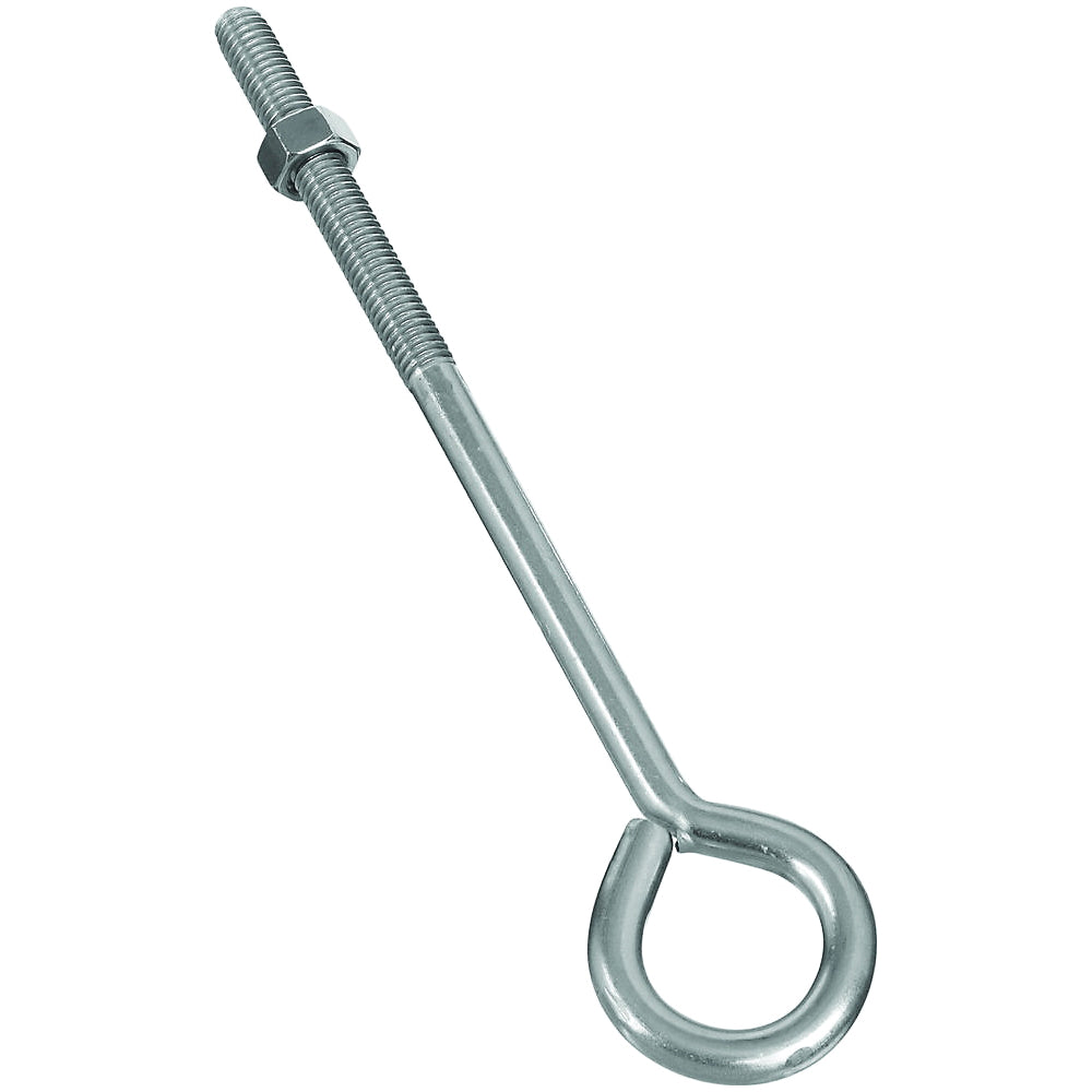 National Hardware Eye Bolt, Thread Size: 3/8-16, Thread Length: 3 in, Shank Diameter: 0.33 in, Shank Length: 6.35 in, Eye Diameter: 1 in ID, 8 in OAL, Working Load Limit: 160 lb, Stainless Steel, Stainless Steel, Includes: Hex Nut