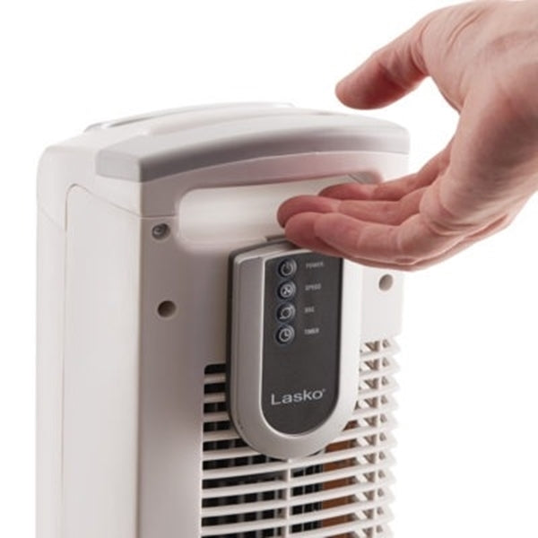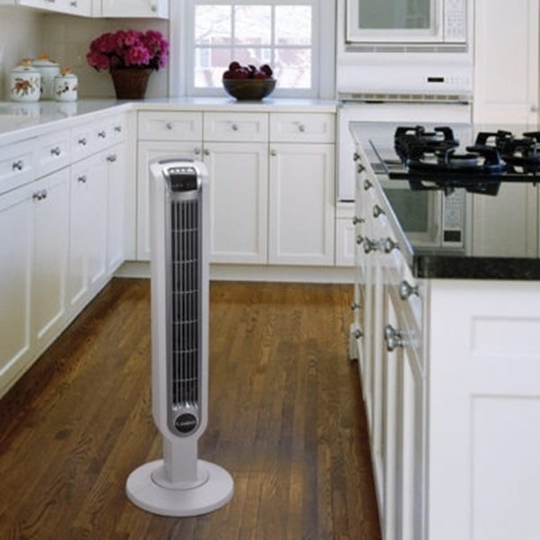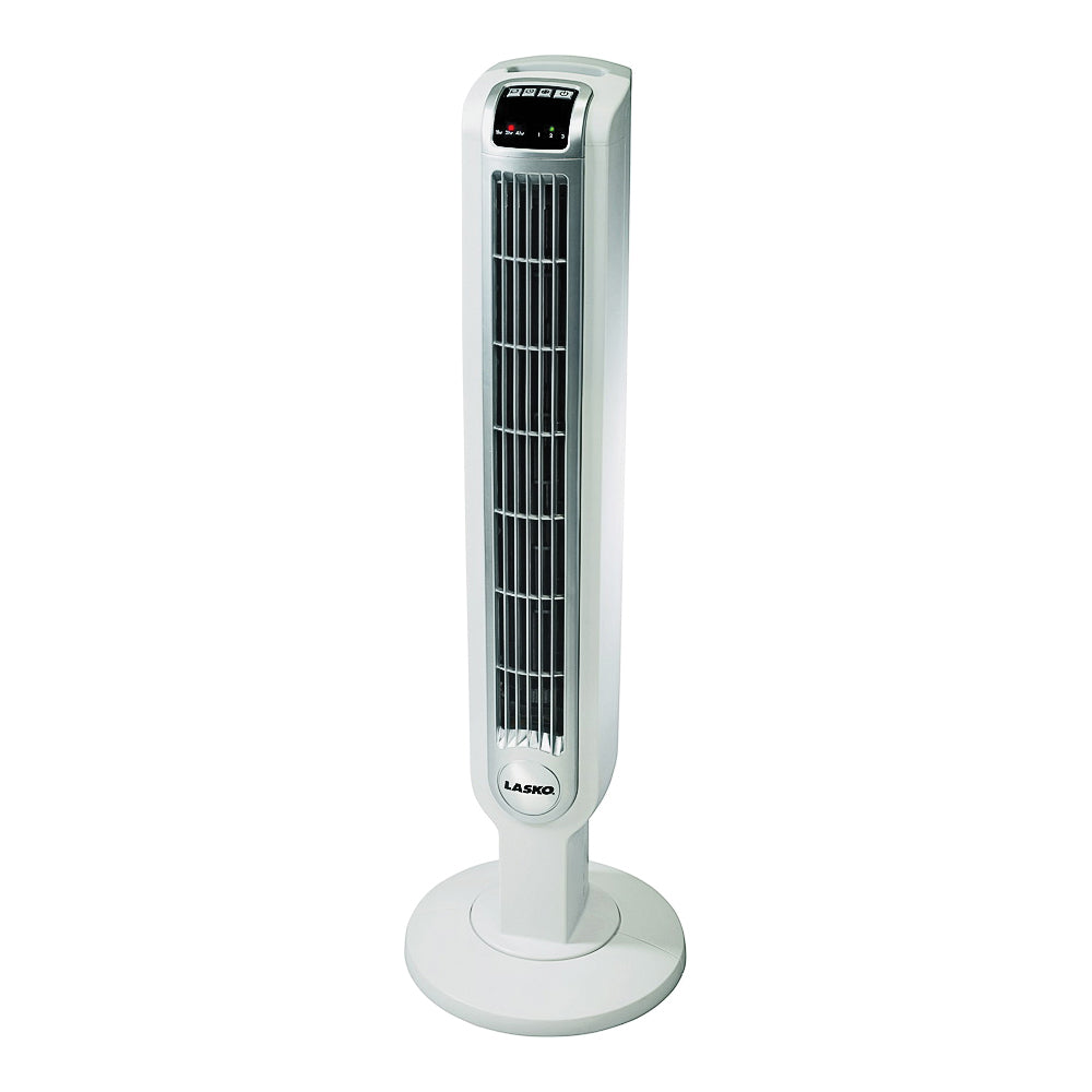 Lasko's 36 in tower fan with remote control circulates air with its smooth oscillation for consistent, cool air flow. Equipped with 3 quiet speeds, this space saver is smartly designed for any home or office.