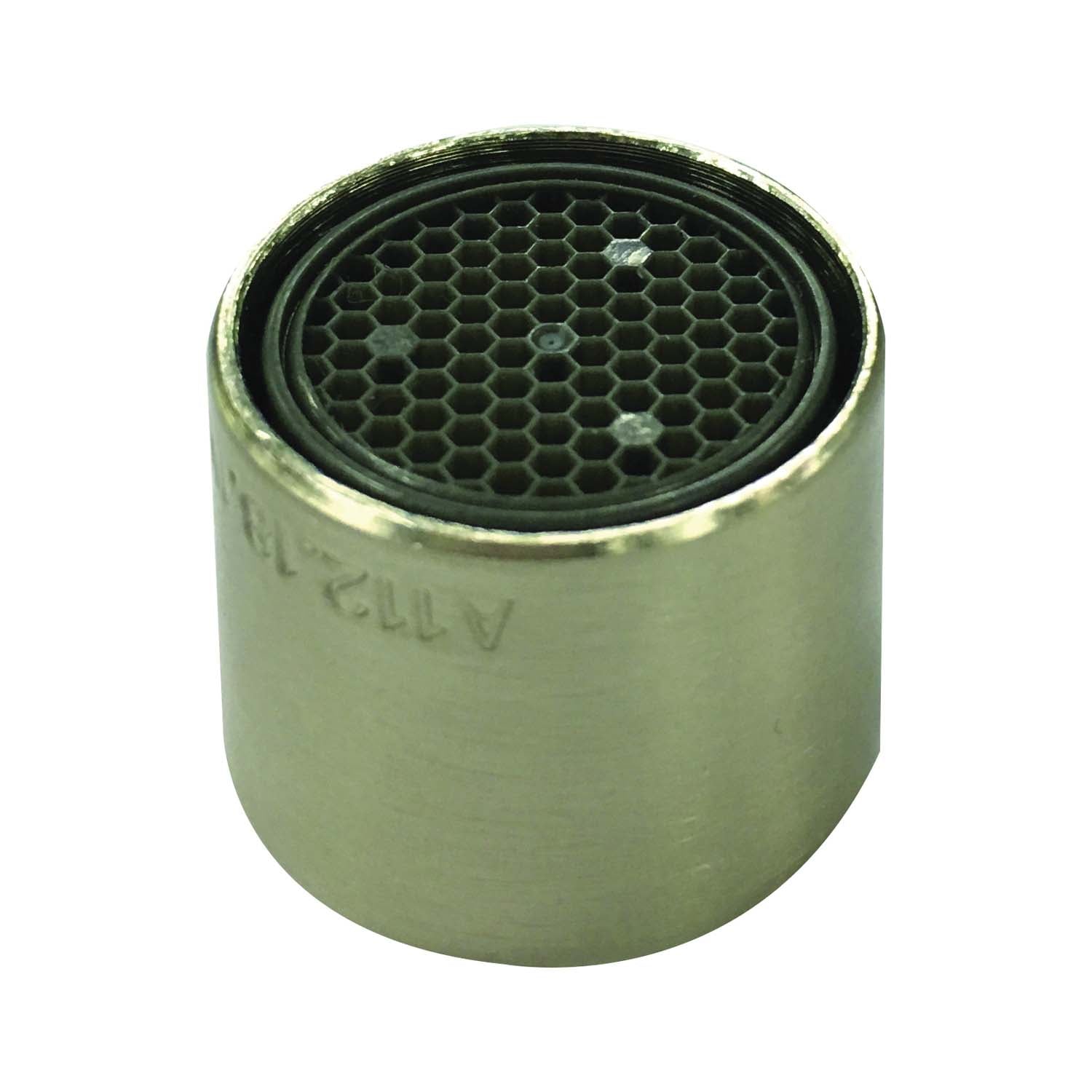 This 1.2 GPM Faucet Aerator has an attractive brushed nickel finish and features a pressure-compensating water flow. This aerator connects to most faucets with inside and outside threads.