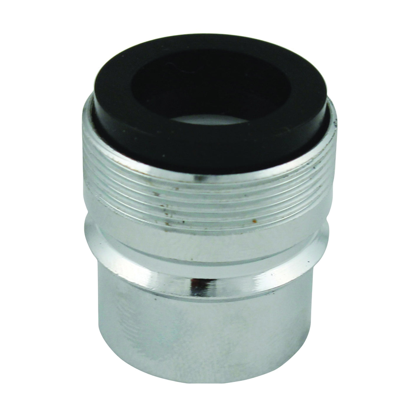 For dishwashers with large snap-on couplings. Large diameter, short pattern. 15/16-17 outside threads, 55/64 in inside threads. Use on sears, kitchen aid, Montgomery Ward® and RCA Whirlpool portable dishwashers. Chrome-plated brass.
