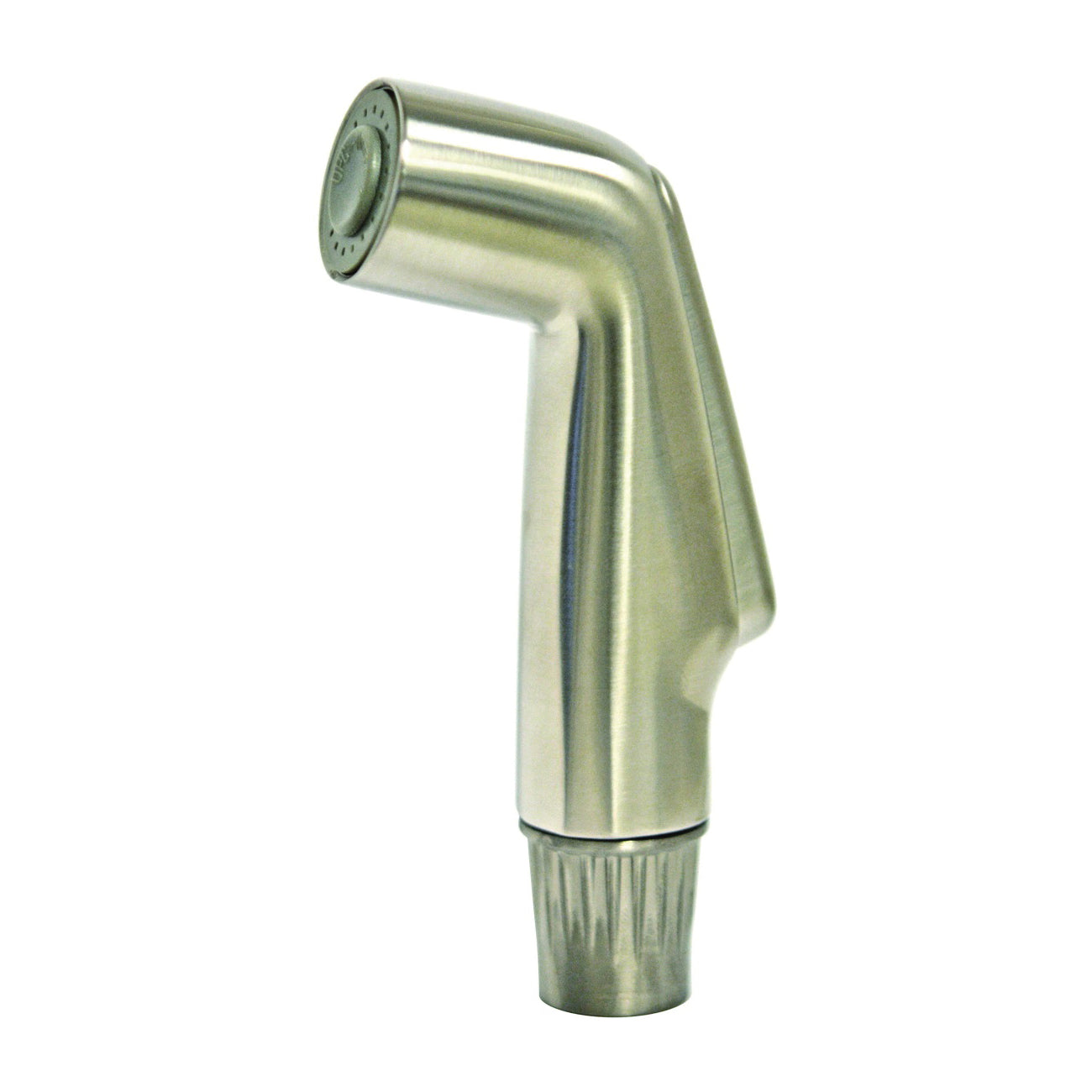 Danco traditional design in brushed nickel. The Danco Kitchen Side Spray features a stylish electric design that will give your fixtures a new updated look. It is crafted from a durable plastic construction that will endure the rigors of everyday use. It may be used to rinse dishes and sinks as it extends the flow of water from a faucet. It replaces thumb-control spray-head and provides high pressure directional power spraying. This spray head has a universal design and fits various faucet brands giving it maximum compatibility.