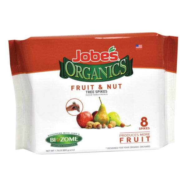 Jobe's organics spikes for fruit and nut trees are the first organic fertilizer in convenient spike form. These organic fertilizer spikes, specially formulated for fruit and nut trees, help build a nourishing environment that promotes beneficial microbial action where need it most at the roots. This in the ground feeding is the most efficient delivery system for organics. The spikes improve long-term soil quality by promoting beneficial microbial growth. The pre-measured spikes make for fast, easy and mess-free fertilizing. For finest results, apply in early spring and late fall.