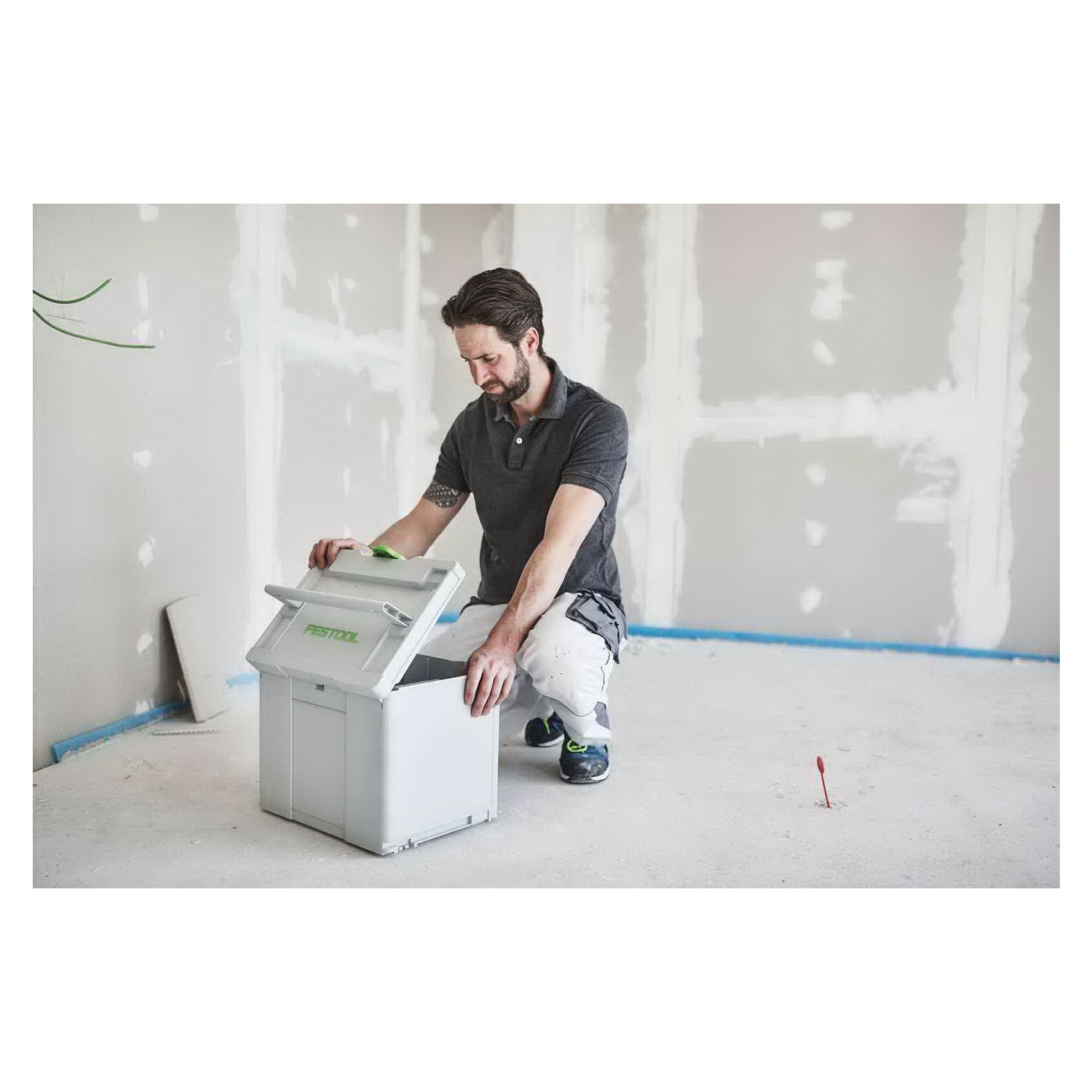 Stores any abrasive in a dedicated space, clearly organized, efficiently protected against moisture and always to hand. The pivotal point of the systainer is the T-LOC, the central control element - close, open, connect with just a single turn. Particularly time-saving - with T-LOC, the systainer T-LOC can be opened without having to disconnect it from the other systainers beforehand.