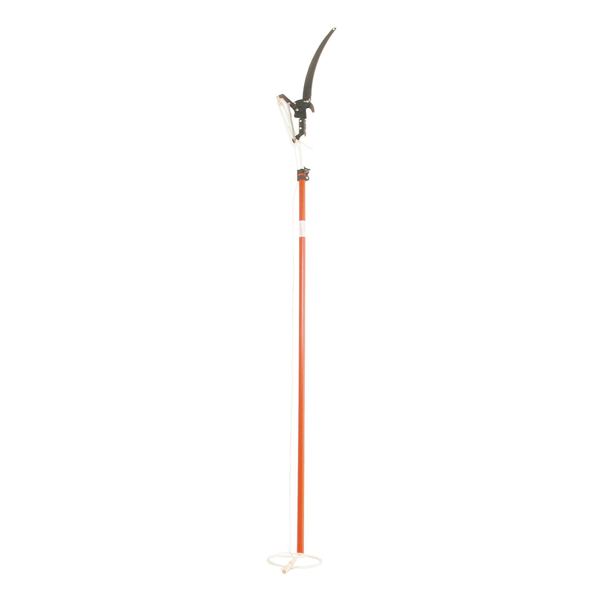 Gear driven action and dual pulley system triples cutting power. Heavy-duty solid steel head. Hardened and tempered steel lopper blade with rustproof EverCut coating. 16 in curved saw blade with rustproof EverCut coating. Poles securely lock with convenient thumb-screw. Fully assembled and ready for use. Telescoping pole for extended reach. 13 ft 6 in solid braid polyester cord.