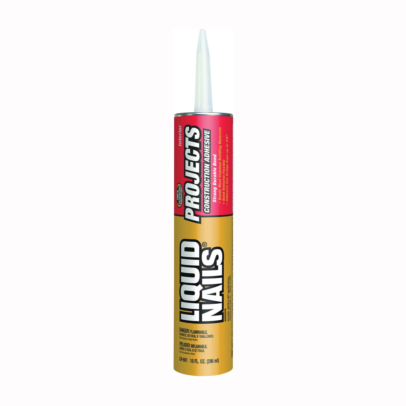 Liquid Nails Project construction adhesive LN-601/LNP-601) is proven high-quality, waterproof adhesive that creates a strong durable bond that remains flexible, bridges gaps up to 3/8 in and offers up to 10 mins working time.