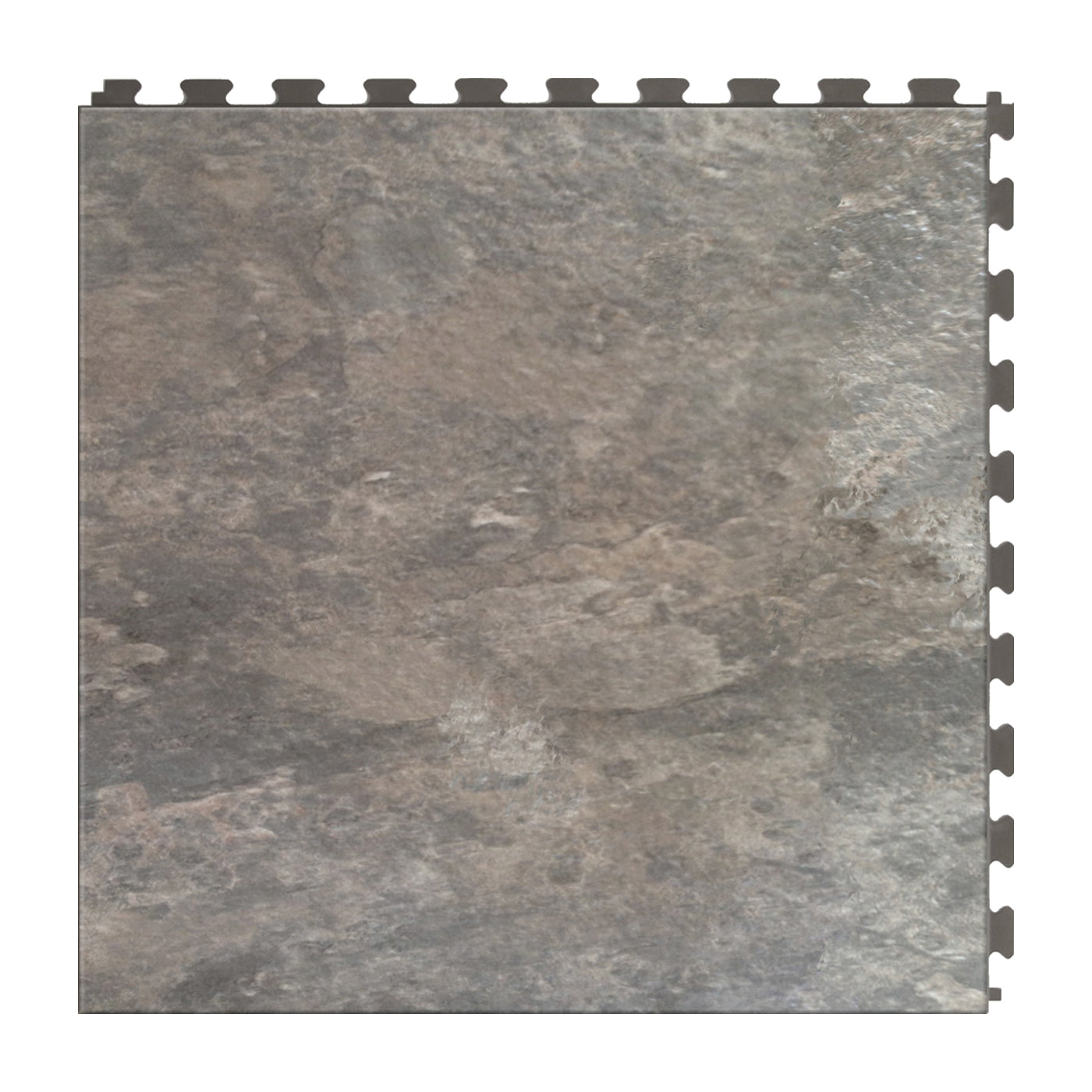 Hidden interlocking LVT tile. Natural Stone series. Natural slate or stone texture. 6 tiles per carton, 16.70 sq-ft coverage. Recommended for inside use. Dimension of 20 in x 20 in x 5 mm.
