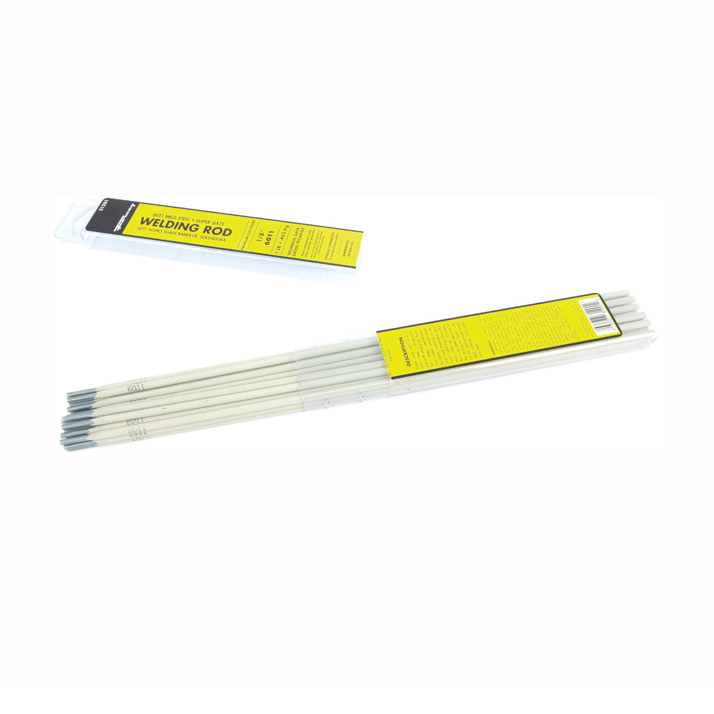 E6011 an all-position rod with strong arc force for deep penetration. Fast metal solidification facilitates welding in vertical and overhead positions. Light slag allows for easy cleanup. Excellent for rusty steel because of the strong arc force. Useful for galvanized tanks, steel casting and pressure pipe. AC, DCEP, DCEN recommended polarity. 88000 psi tensile strength. 25 to 75 A on sku #s (890.9665, 890.9673, 890.9681), 35 to 125 A on sku #s (890.9707, 890.9715, 890.9723), 50 - 160 A.