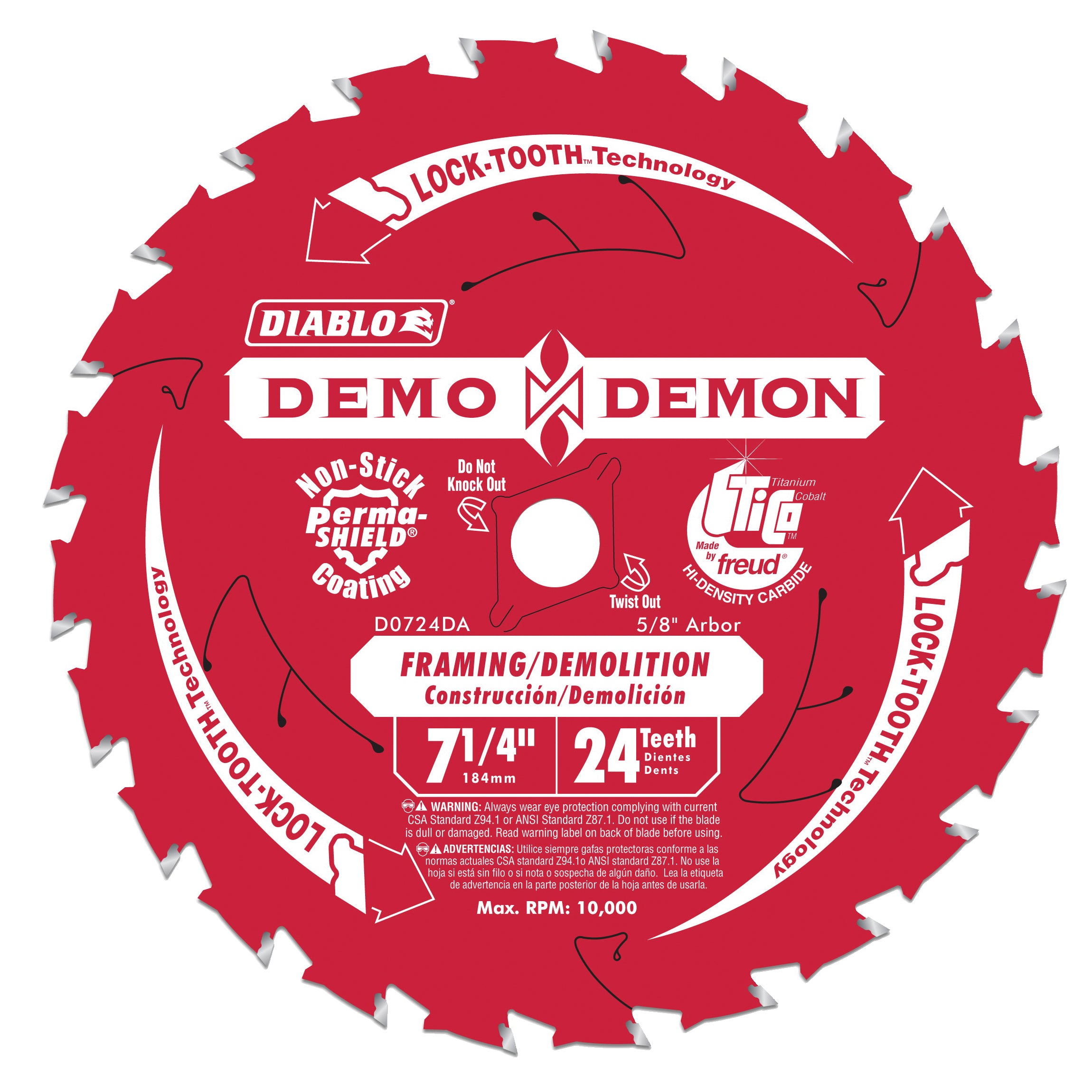 New Demo Demon Amped™, the ultimate framing and demolition saw blade for up to 10X cutting performance in intense applications. This 7-1/4 in 24 tooth blade includes a new industry-first tooth grind sequence, Tracking Point Amped™ that is specifically designed to provide extreme durability and effortless cuts, even when cutting abrasive materials such as shingles, bolts or nail-embedded wood.