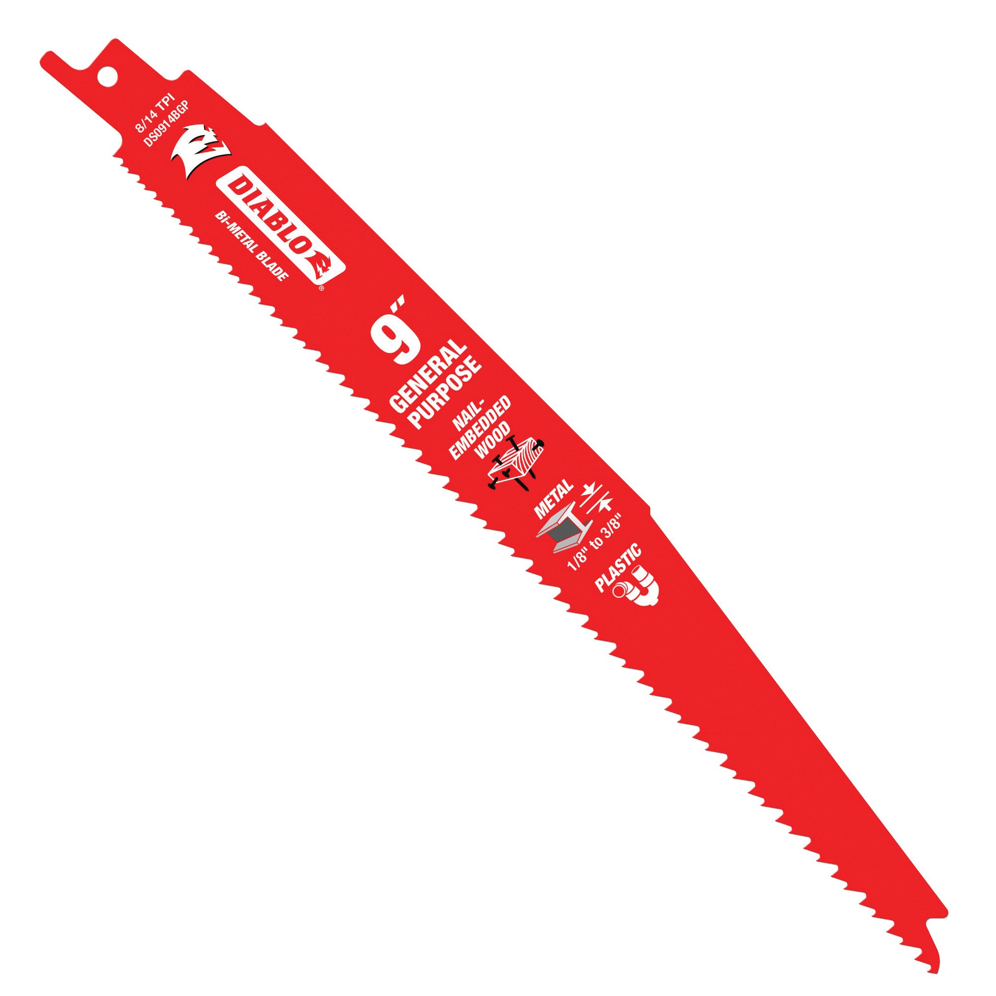 Diablo's reciprocating saw blades are specifically designed for maximum performance in general-purpose, wood with nails and metal applications. These high-performance blades feature bi-metal technology that delivers up to 5X longer life of standard blades on the market. Diablo's patented variable tooth technology provides faster cuts with less vibration.