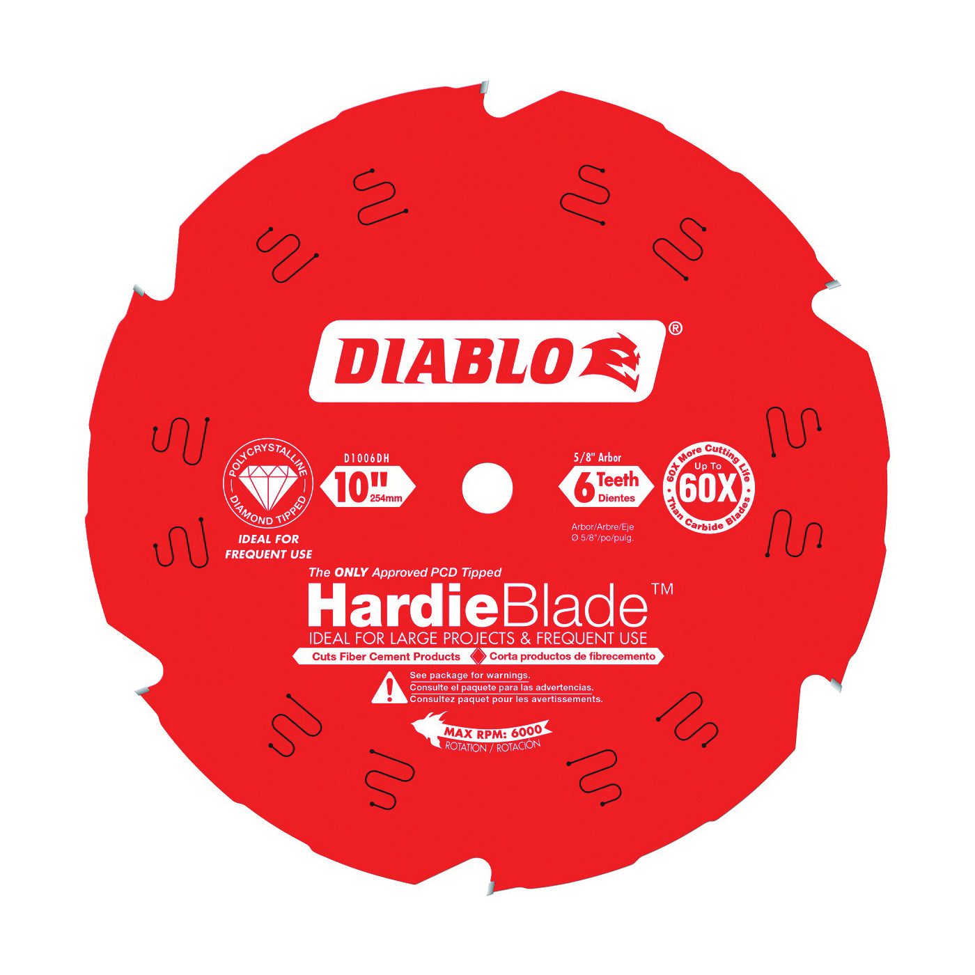 Diablo HardieBlade™ is the only approved PCD (Polycrystalline diamond) tipped fiber cement blade recommended by James Hardie Building Products. Diablo fiber cement blades generate up to 5% less respirable dust, while delivering the longest life in all fiber cement materials. Diablo PCD Hardieblades feature a unique, spark-eroded triple chip grind for long life up to 60X the life in fiber cement of conventional carbide blades Diablo PCD Hardieblades are ideal for full time use in heavy-duty applications like cutting multiple pieces of fiber cement board. Dust generation does not necessarily correlate directly to exposure risk.