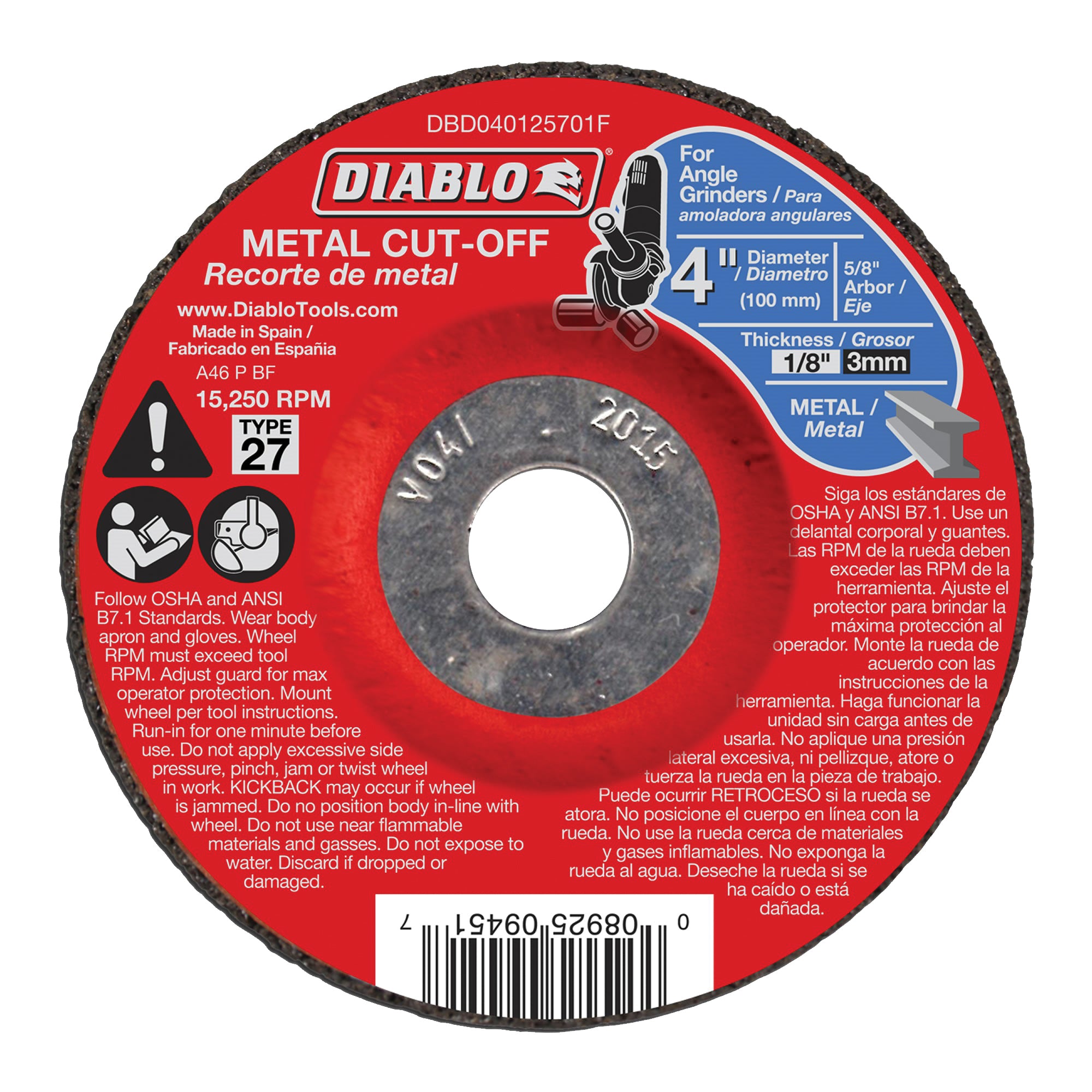Diablo premium metal cut-off discs provide great performance and increased productivity. Featuring a premium aluminum oxide blend, these discs cut through material faster than other cut-off discs and offer an extra-long cutting life. Fully reinforced for use in hand-held cut-off work. Ideal for use when working in hard-to-reach areas.