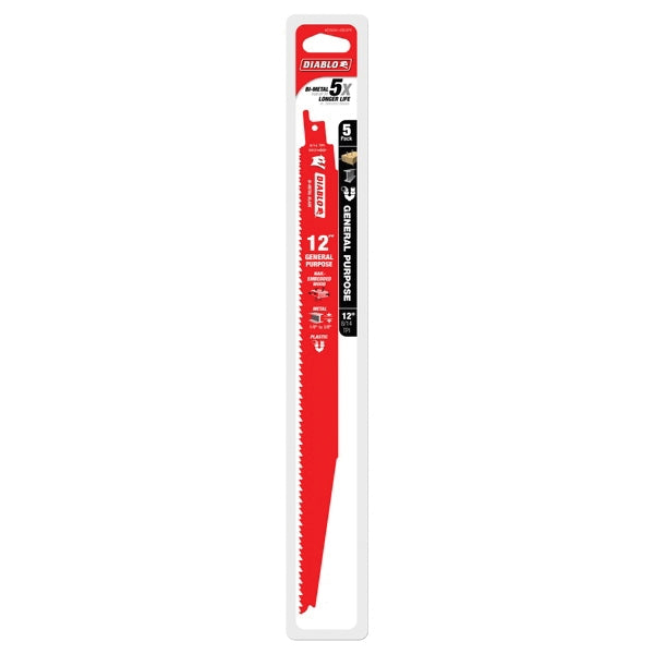 • Diablo DS1214BGP5 Reciprocating Saw Blade, 12 in L, 8/14 TPI