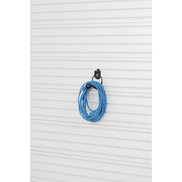 Electrical cord and hose storage is made easy with the Gladiator® cradle hook. Keep electrical cords and hoses off the ground, organized and out of the way. This hook can be easily repositioned on any Gladiator® wall system and holds up to 25 lb vinyl padding protects your items from scratches, dents and wear through.
