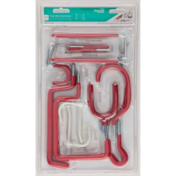 | Includes | (2) #N188-007 (2158 Series) 45 lb Bicycle Hook, (2) #N188-006 (2211 Series) 50 lb Screw Hook, (2) #N188-004 (2210 Series) 15 lb Double Screw Hook, (2) #N222-497 (2157 Series) 6 in 20 lb Ladder Hook, (5) #N188-007 (2240 Series) 5 lb Straight Hook, (2) #N188-005 (2155 Series) Storage Screw Hook, (2) #N188-004 (2215 Series) Coat/Hat Hook, (1) #N112-016 (2212 Series) Tool Hook, (2) #N112-032 (2221 Series) Hammer-In Storage Hook |