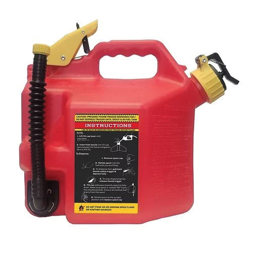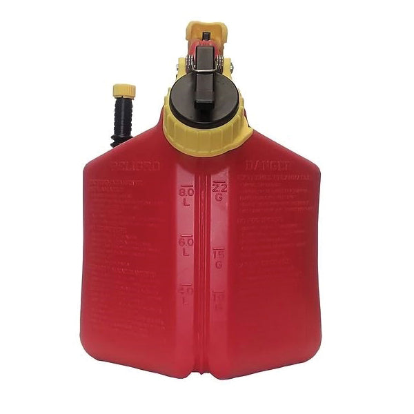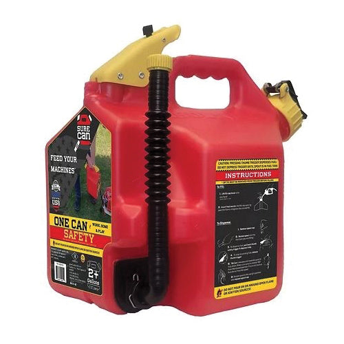 The flexible spout rotates down more than 180 deg and fits greatly into any machines fill location while the thumb release trigger on top controls the flow. By pulling straight back on the safety trigger and then down on the thumb button fuel is released immediately while you stay in complete control the entire time. When you notice your fill tank is almost full slowly release the thumb button and allow the excess fuel to drain from the top of the spout before rotating it back-up. No more bending over and tipping your fuel can forward and holding it in an awkward position. The SureCan is a high-quality fuel dispensing machine.