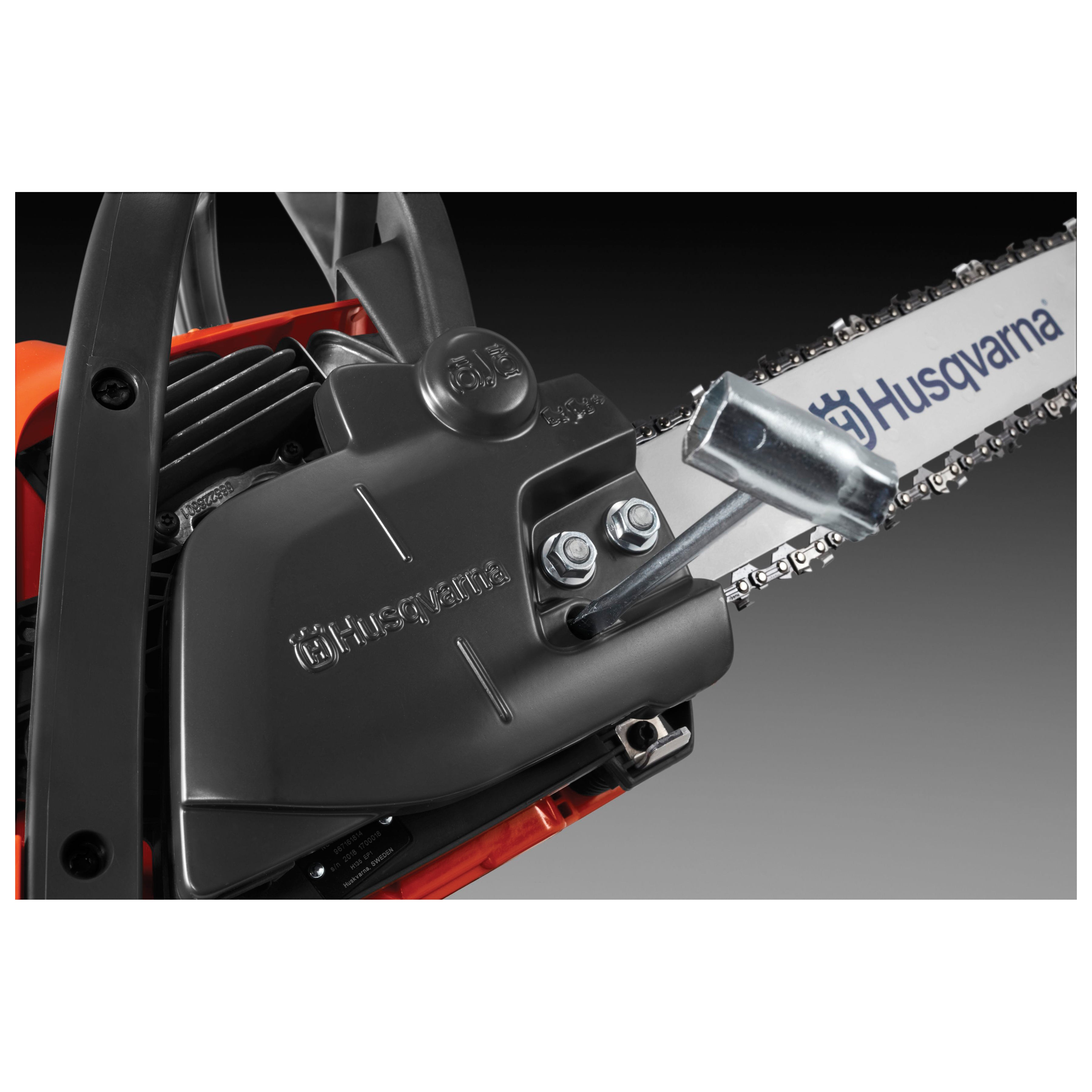 Robust, reliable and easy to use, the Husqvarna 135 Mark II gas chainsaw delivers ample cutting performance for homeowners. This 16 in chainsaw is a great addition to tree cutting equipment and outdoor tools. For an effortless start-up, this cordless chainsaw features Smart Start and a combined choke and stop control to reduce the risk of engine flooding. It is also equipped with a side-mounted tensioning system that is positioned for easy slack adjustments while an inertia-activated chain brake reduces the likelihood of injury due to kickback. For easy handling, this gas powered chainsaw uses LowVib technology to reduce vibration levels, lessening operator fatigue. The Husqvarna chainsaw is equipped with Air Injection, a centrifugal air cleaning system, that removes larger dust and debris particles before they reach the air filter, improving engine life and reducing air filter cleanings. An efficient 2.1 hp X-Torq engine uses Husqvarna 2-stroke lubricant with a 50:1 oil tank volume (0.549 US pint or 0.26 L tank volume). Each chainsaw Husqvarna creates comes with an extended warranty on pre-mixed fuel: extend your warranty from 2 to 5 years by purchasing 96 fl-oz of fuel at the time of your purchase of select handheld products.