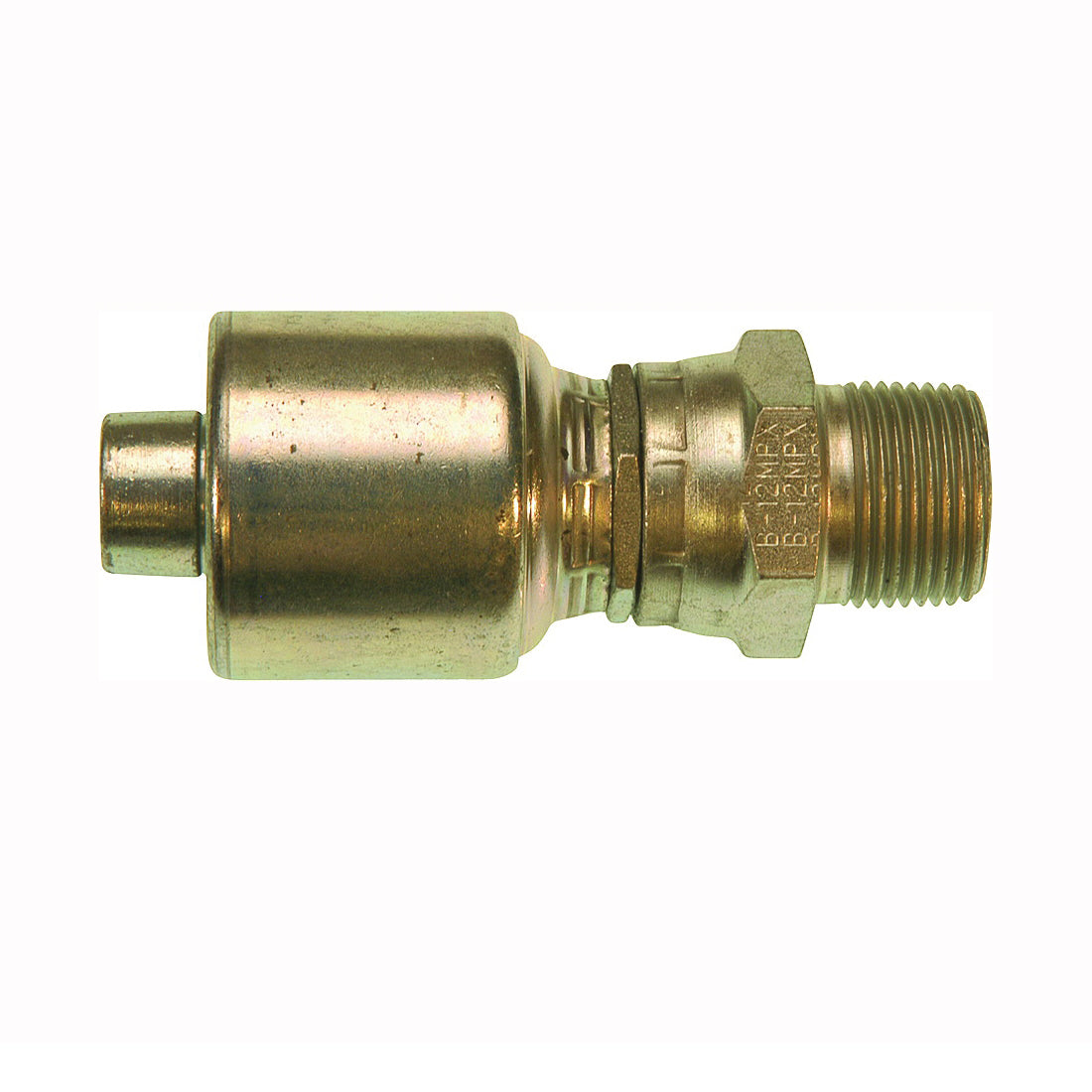 Gates MegaCrimp Hose Coupling, Nominal Size: 3/8-18, Crimp x NPTF Connection, Angle: Straight, Stem Hex Size: 5/8 in, Steel, Zinc, Hex Size: 7/8 in, Cut-Off Length: 1.71 in, 3/8 x 3/8 in Dia, 2.81 in L, Suitable for: CM2T, G1, G1H, G2, G2H, G2L, G2XH, G3H, G4H, GMV, GTH, GTHX, J2AT, M-XP, M2T, M3K, M3KH, M4 Series Hose
