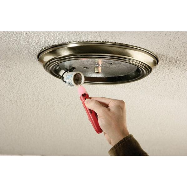 A non-contact voltage tester serves as a key component in any electrical toolkit, allowing the user to verify the presence of AC voltage prior to working on an electrical installation or during troubleshooting without requiring physical contact with live electrical conductors. The Gardner Bender GVD-3504 Circuit Alert non-contact voltage tester features both audible (beeping) and visual (360 deg flashing red light) indicators to alert the user of the presence of AC voltage from 50 to 600 V. Use to locate breaks in wires and voltage at outlets, circuit breaker panels, light fixtures, switches and motors. Quickly locates the hot terminals in receptacles. Fully insulated probe tip eliminates the risk of contacting live electrical wires. Built-in patented safe test feature ensures tester and batteries are working properly. The unit includes a pocket-clip for secure portability.
