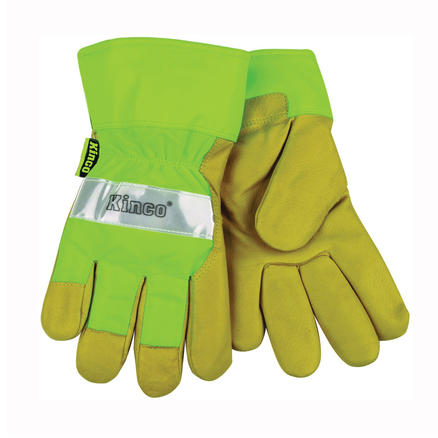 Heatkeep Work Gloves, Men's Gender, Size: XL, Leather Palm, Green/Palamino, Wing Thumb, Lined
