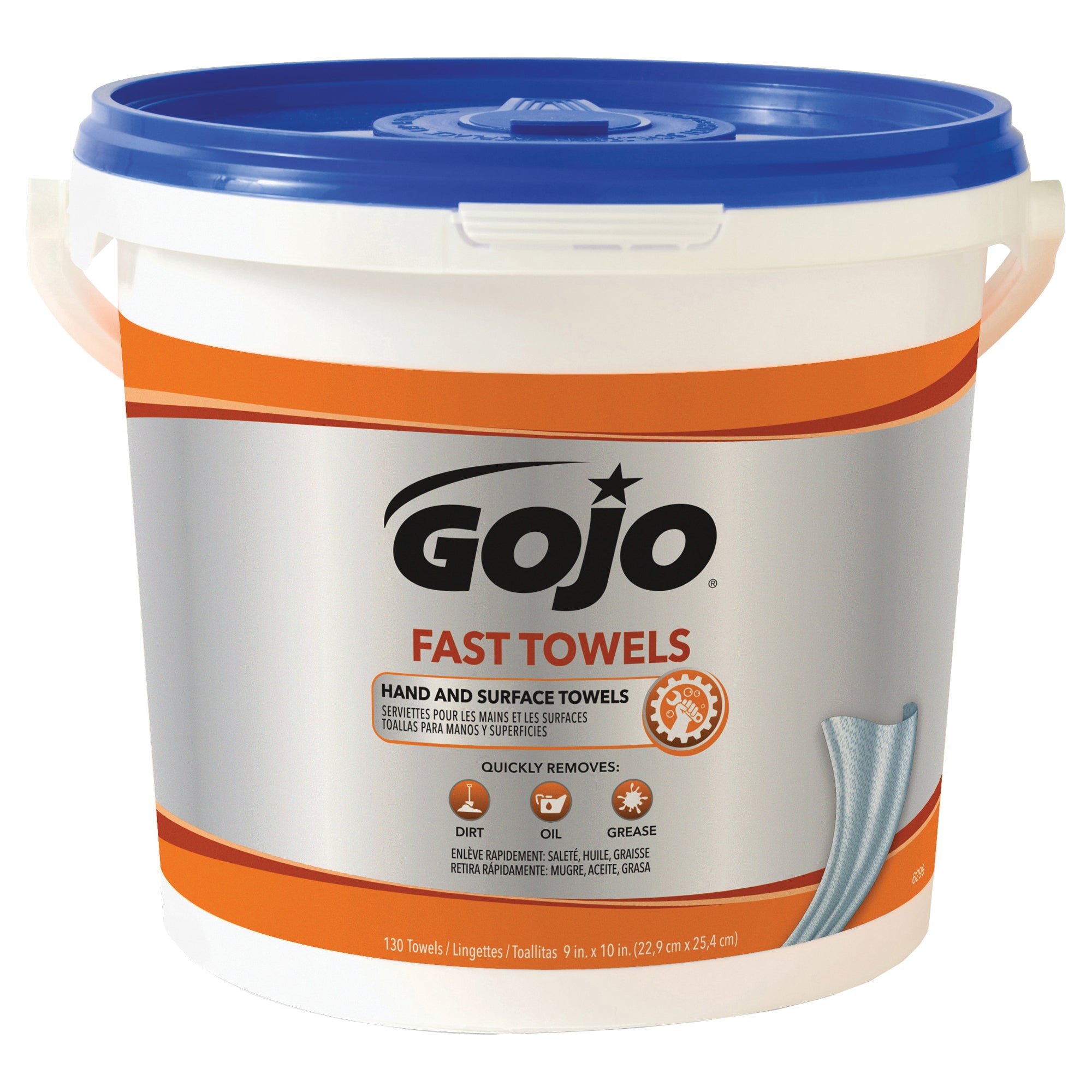 GOJO fast towels are large, high strength hand and surface cleaning towels. Each fast towel is pre-moistened with a GOJO heavy-duty formula that cleans hands, arms, tools and surfaces. Use GOJO fast towels in service vehicles, on workbenches, at job sites or wherever water is not available.