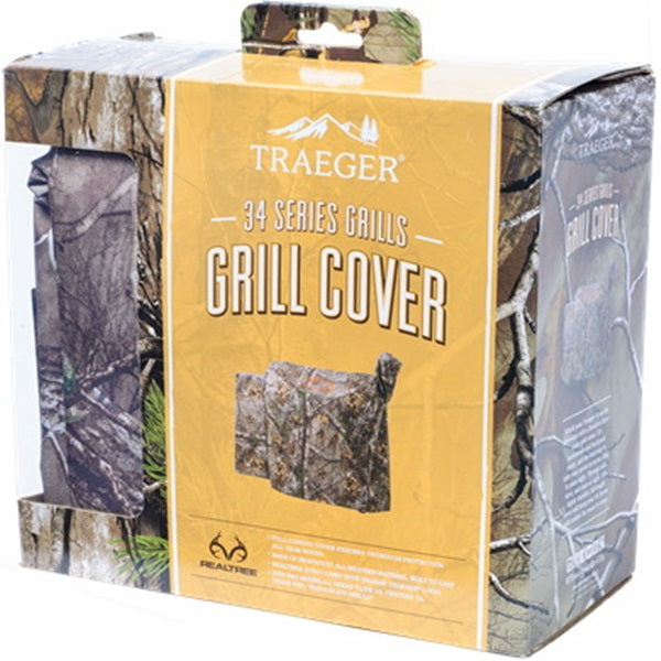 • Traeger Realtree 34 BAC377 Full-Length Grill Cover, 22 in W, 49 in D, 39 in H, Kevlar/PVC, Camouflage