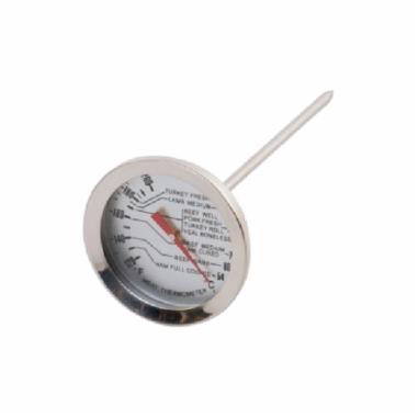 A traditional meat thermometer that can be left in the product during cooking so that the temperature can be checked directly at all times. An indication of the ideal core temperature according to the type of meat is given on the dial.