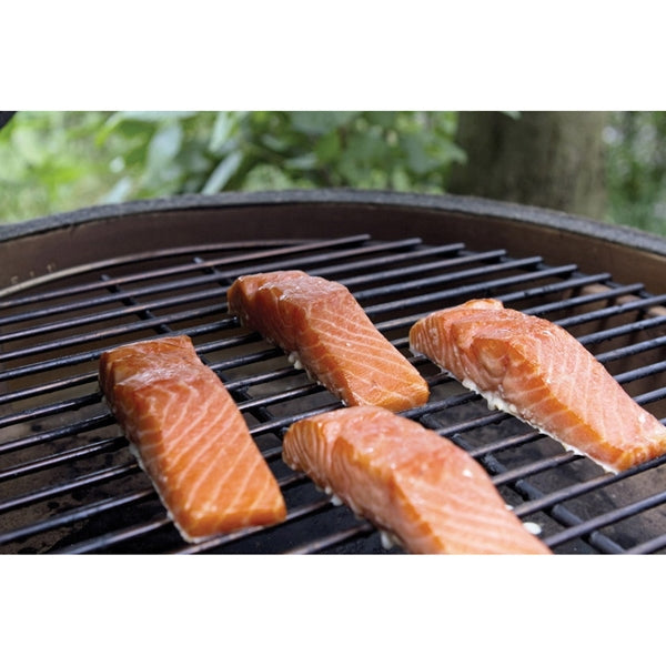 For ideal sear marks on your food, utilize the excellent heat conductivity of the cast iron cooking grid as an alternative to the primary stainless cooking grid, cast iron gets very hot and retains the heat, turning it into a ideal searing surface, flip the grid over for a flat searing surface for fish or seafood.