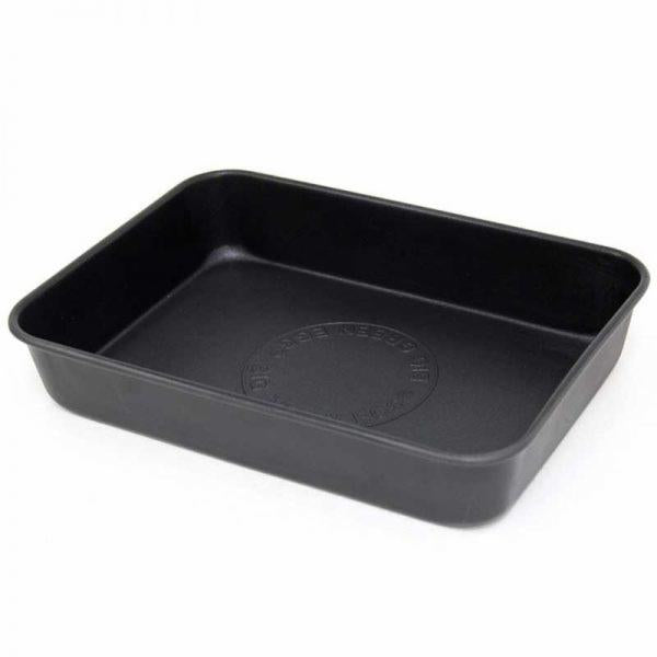 The drip pans feature an easy to clean, non-stick surface and have the Big Green Egg logo embossed in the bottom of the pan. The Rectangular drip pan works perfectly with the V-Rack for cooking turkey, roasts, chickens and other larger cuts of meat.