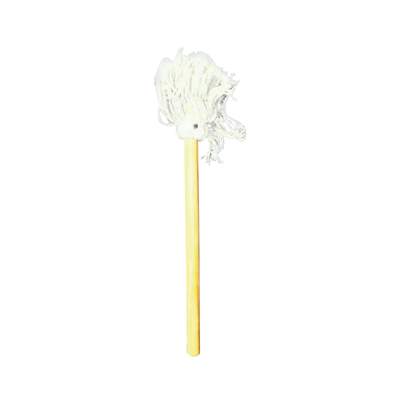 50% cotton and 50% synthetic thread, head fastened to wooden handle. Individually packed for cleanliness.